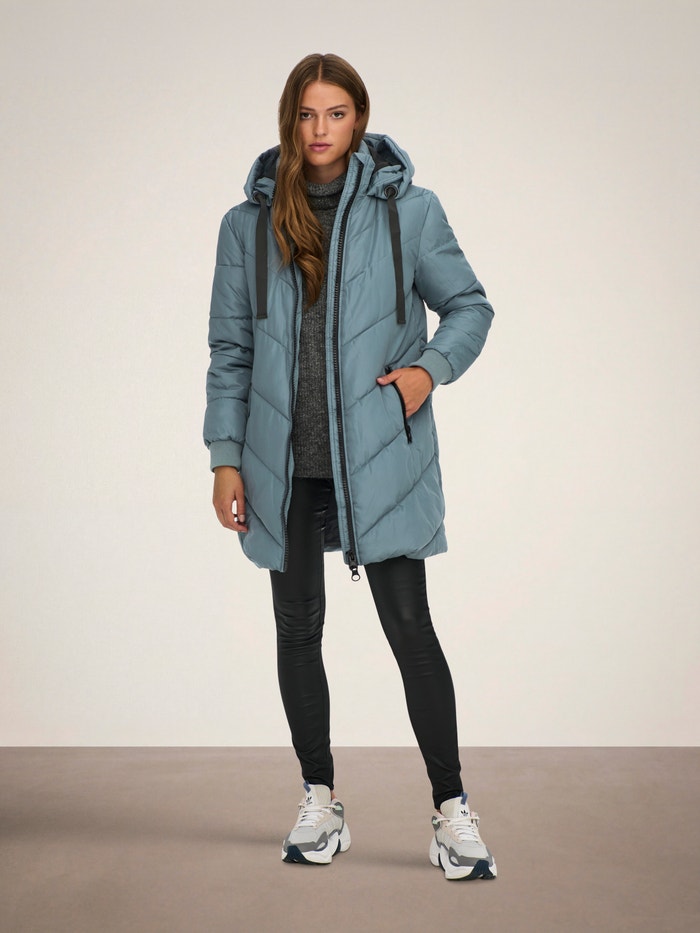 - Výstřih : Kapuce s regulací provázku