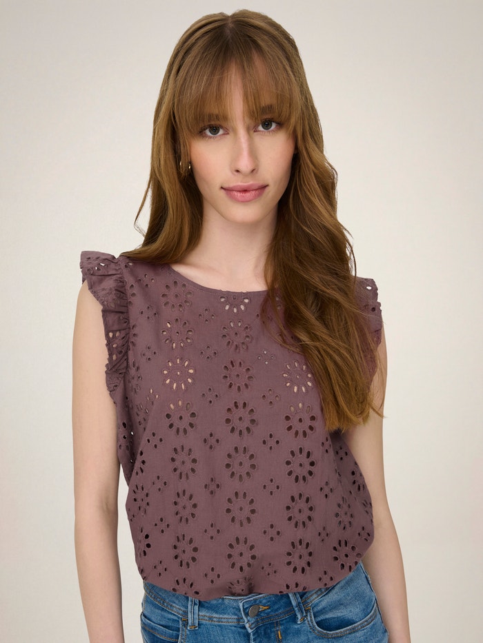 Anglická krajka (Broderie Anglaise) se vyznačuje výřezy a výšivkami, které vytvářejí krásný krajkový vzhled.