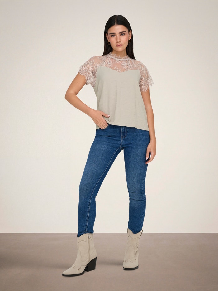 Ve vteřině změňte svůj každodenní outfit přidáním ženského topu a vytvořte tak jemný a čistý výraz.