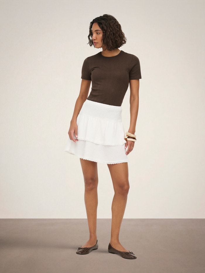 - Ærme : Korte ærmer