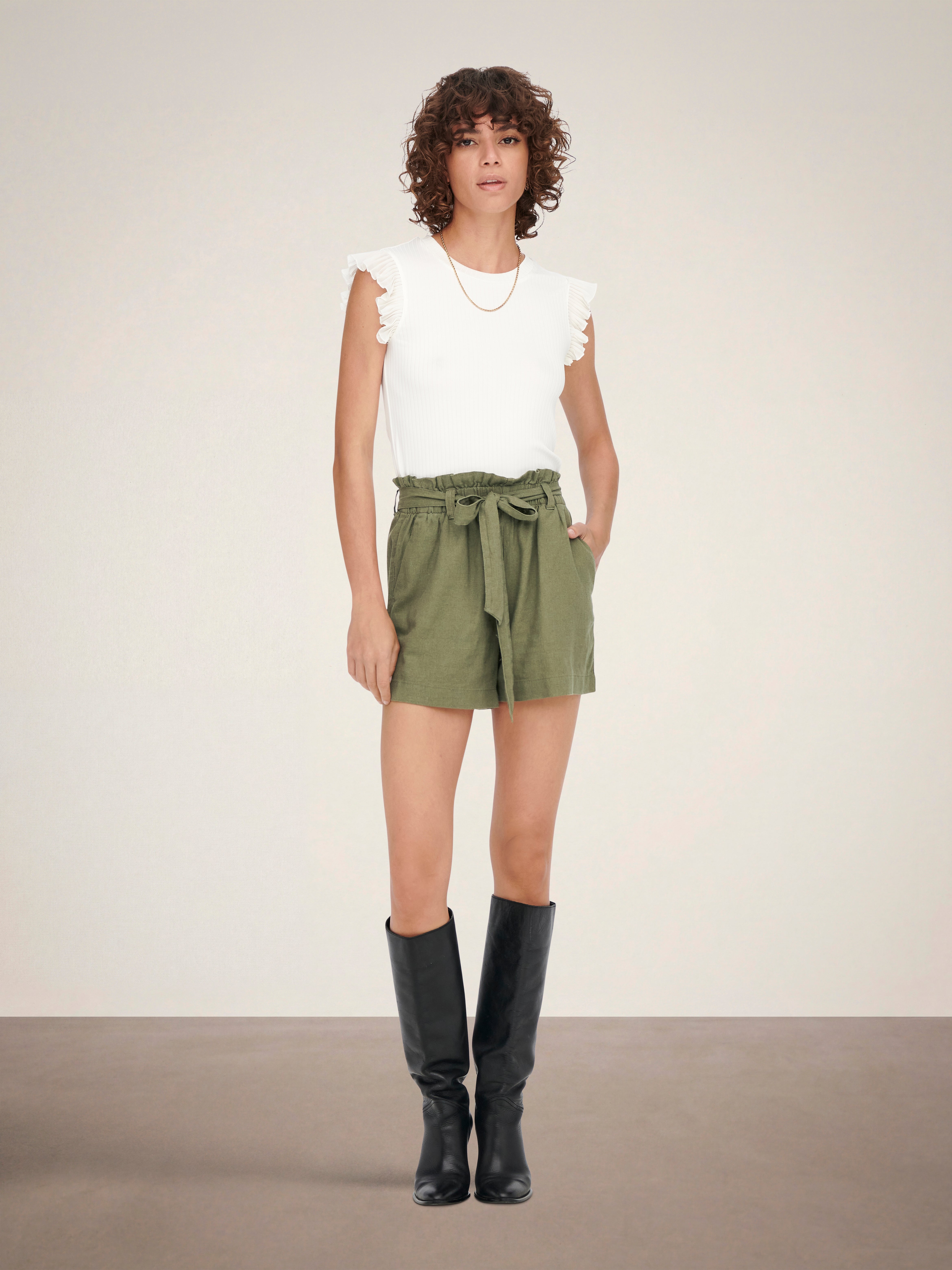 JDYSAY Mittlere Taille Normal geschnitten Leinen Shorts