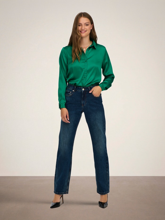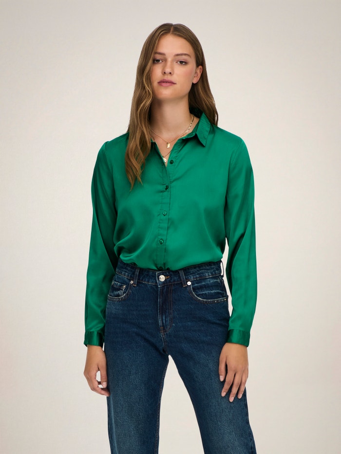 Bringe sanfte Farben und feine Details in deine Garderobe mit einer femininen Bluse, die sich leicht mit zeitlosen Jeans oder einem eleganten Rock kombinieren lässt.
