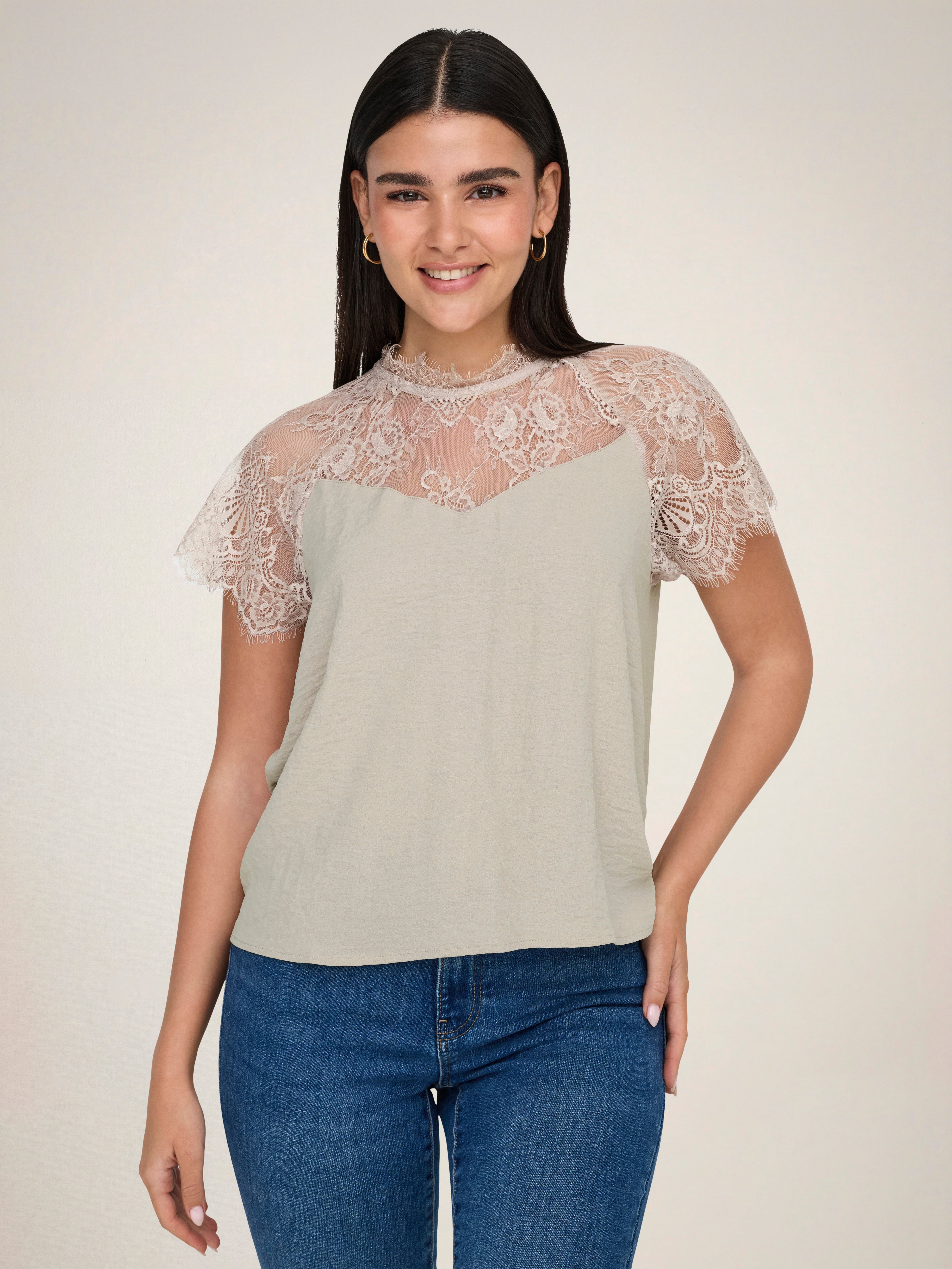 Verändere dein Alltagsoutfit in Sekundenschnelle, indem du mit einem femininen Oberteil einen weichen und schicken Akzent setzt.