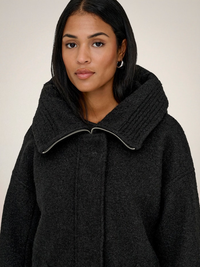 Bouclé ist eine Garnart, die für ihre knotige, verschlungene Struktur bekannt ist, die einen kühlen, gewellten Look erzeugt.