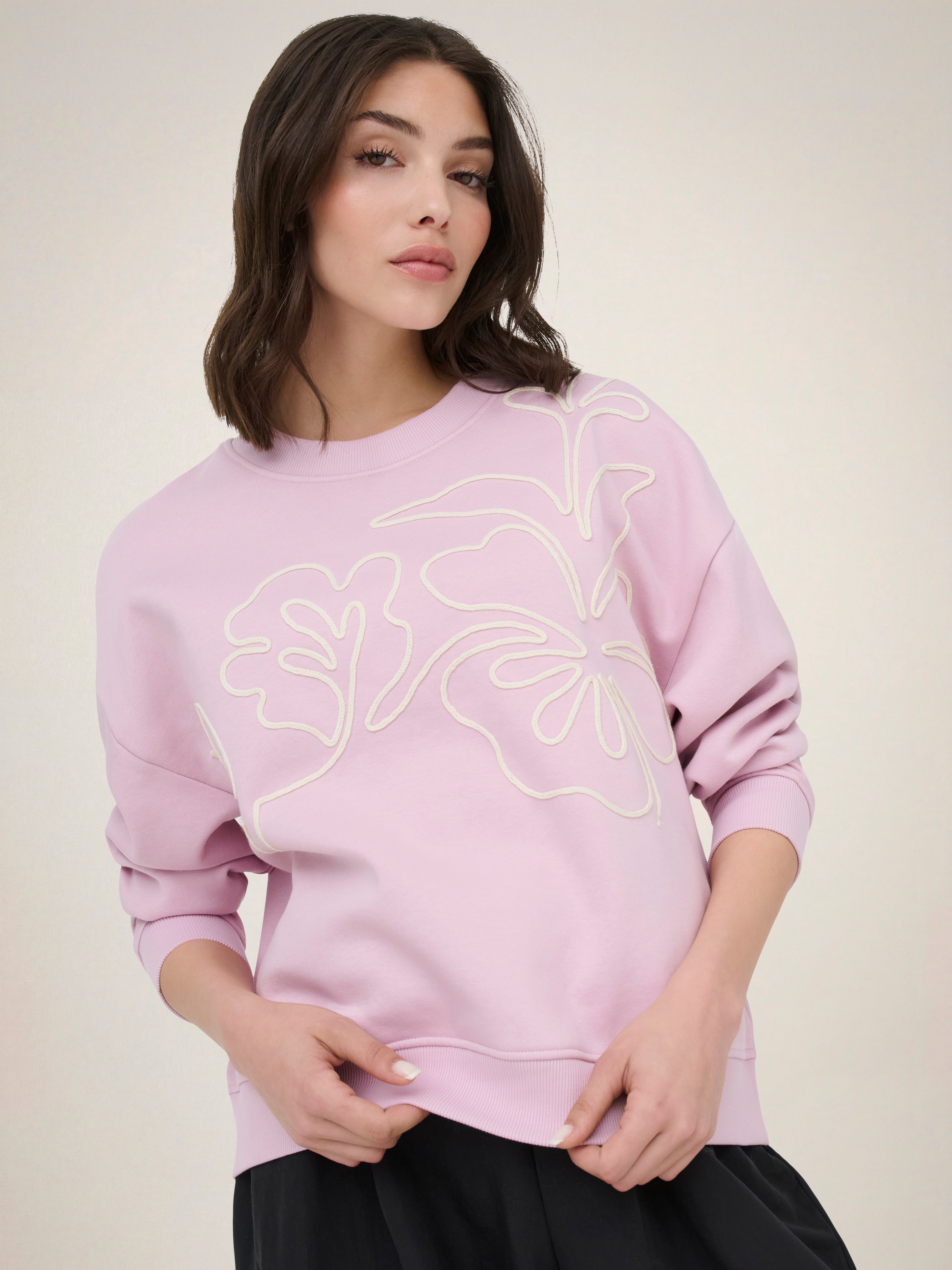 Mit einem weichen Sweatshirt bringst du Komfort und Coolness in deine Garderobe. Style es mit einer Jeans und Sneakern zu einem zeitlosen Look.