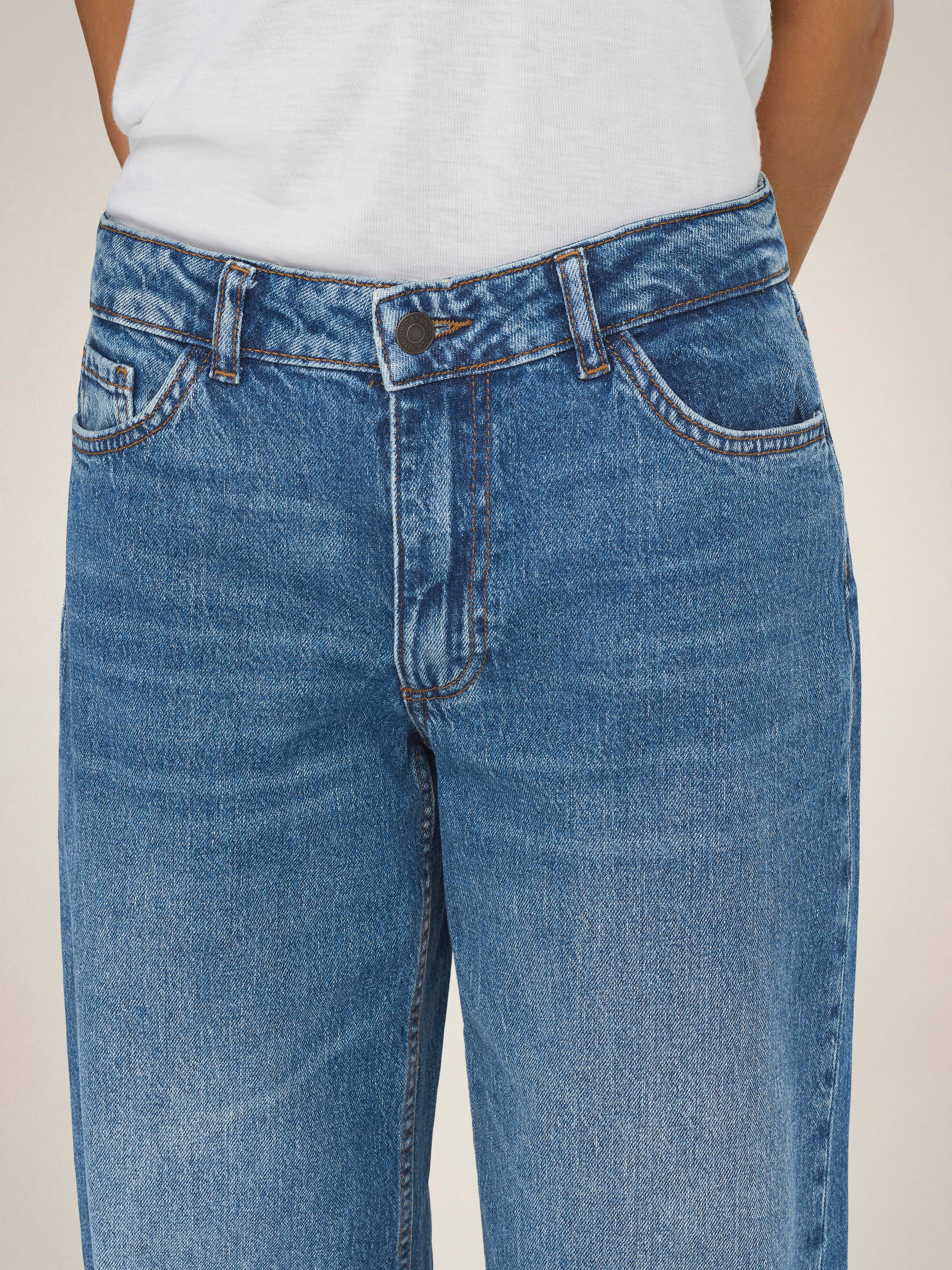 - Waschen : Mittlere Waschung für einen gewaschenen und getragenen Denim-Look