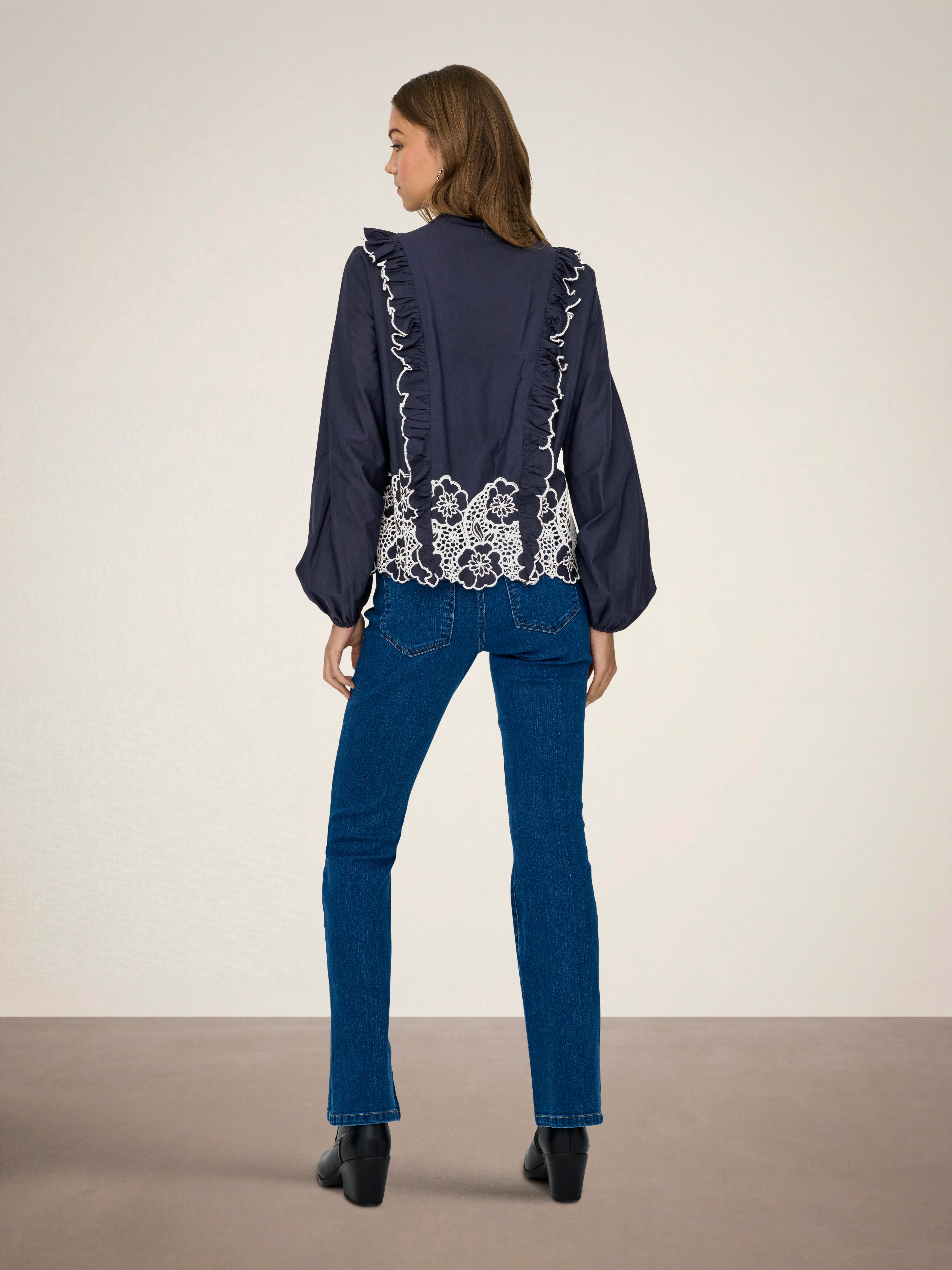 Verändere dein Alltagsoutfit in Sekundenschnelle, indem du mit einem femininen Oberteil einen weichen und schicken Akzent setzt.