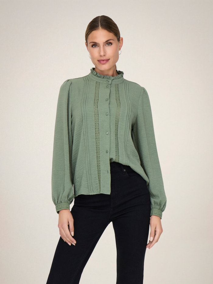 Add soft colours and subtle details to your wardrobe with a feminine shirt easy to pair with timeless jeans or a tailored skirt.