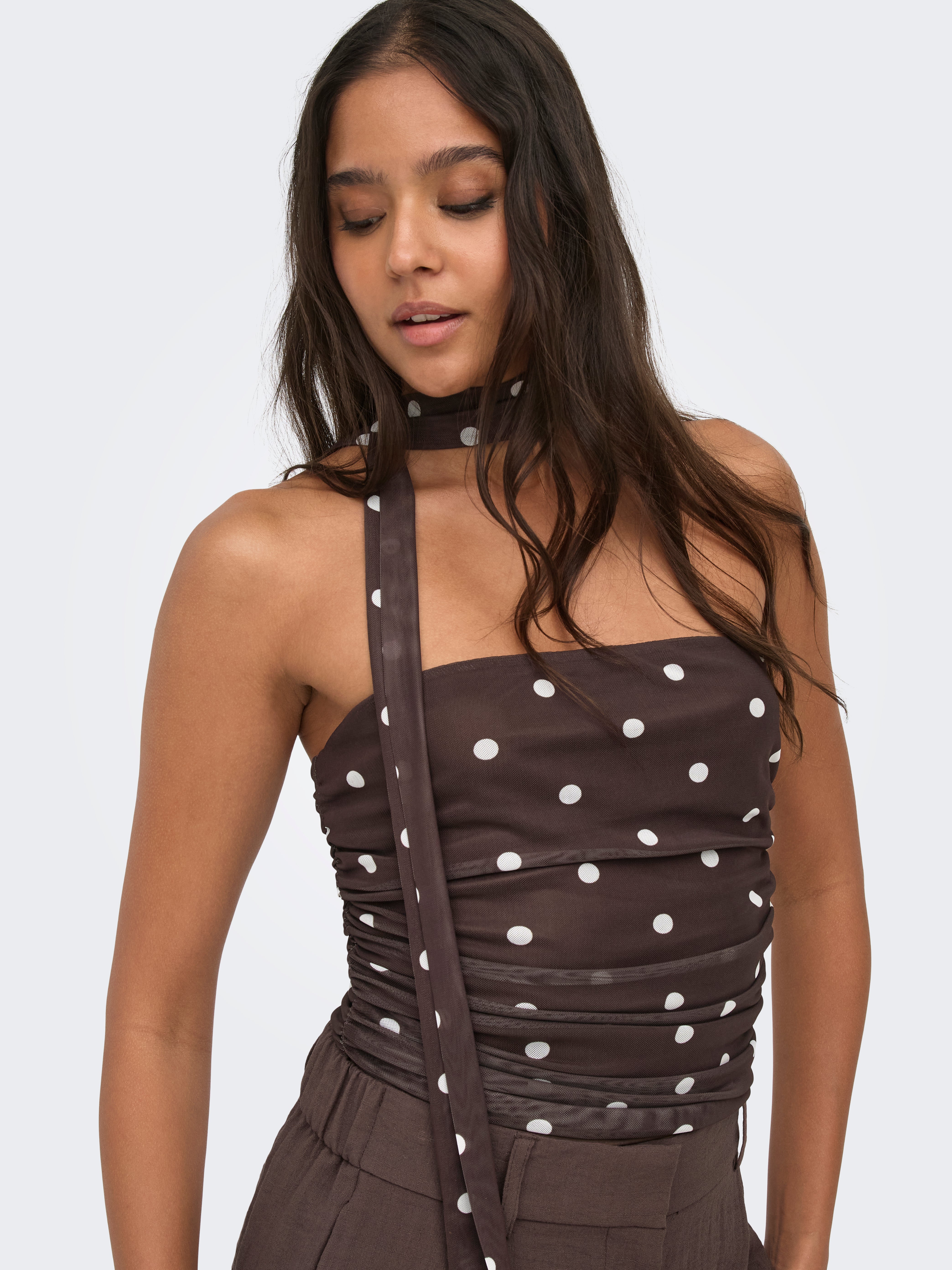 Change your everyday outfit in a second by adding a feminine top for a soft, clean expression.