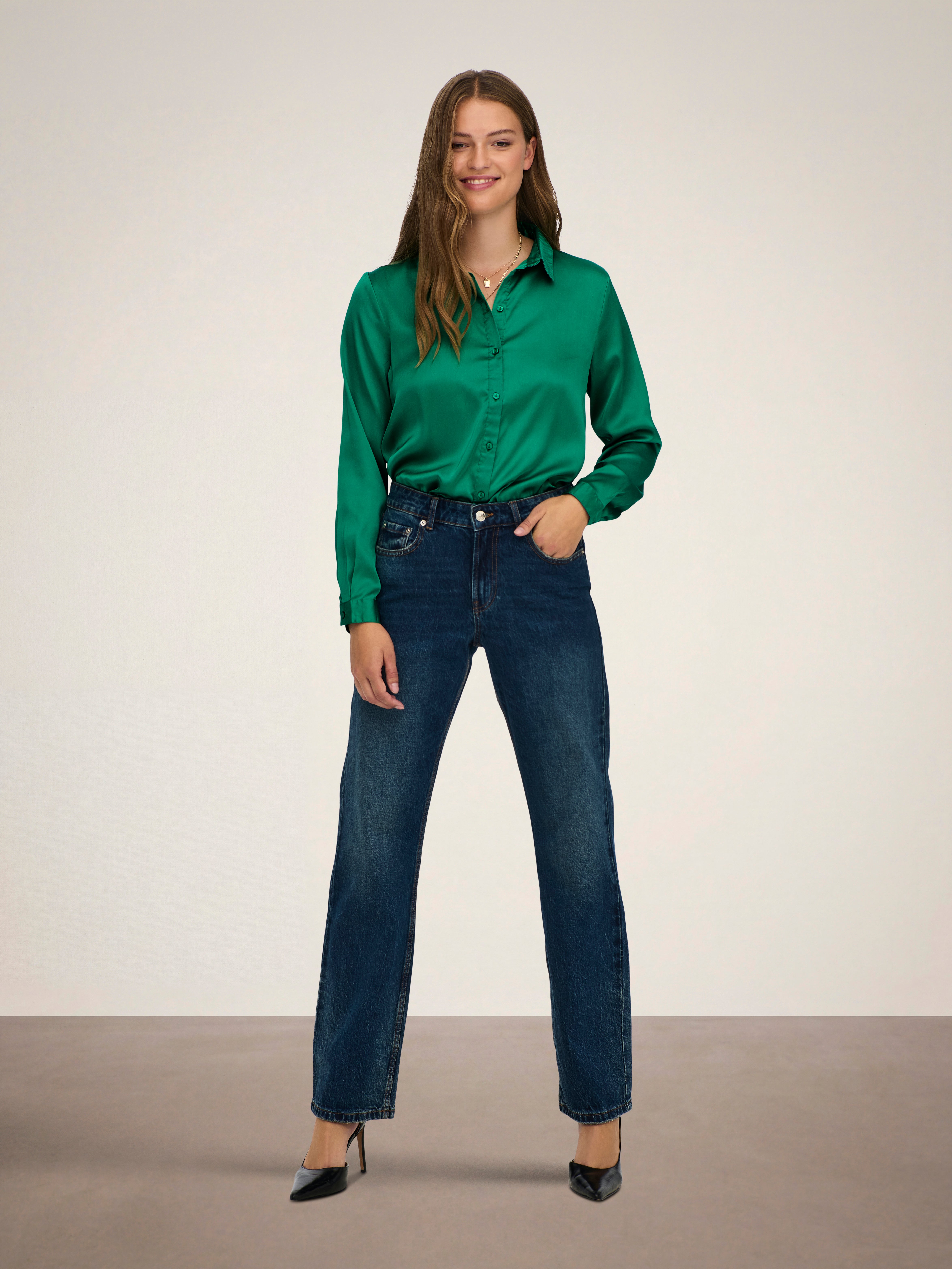 Add soft colours and subtle details to your wardrobe with a feminine shirt easy to pair with timeless jeans or a tailored skirt.