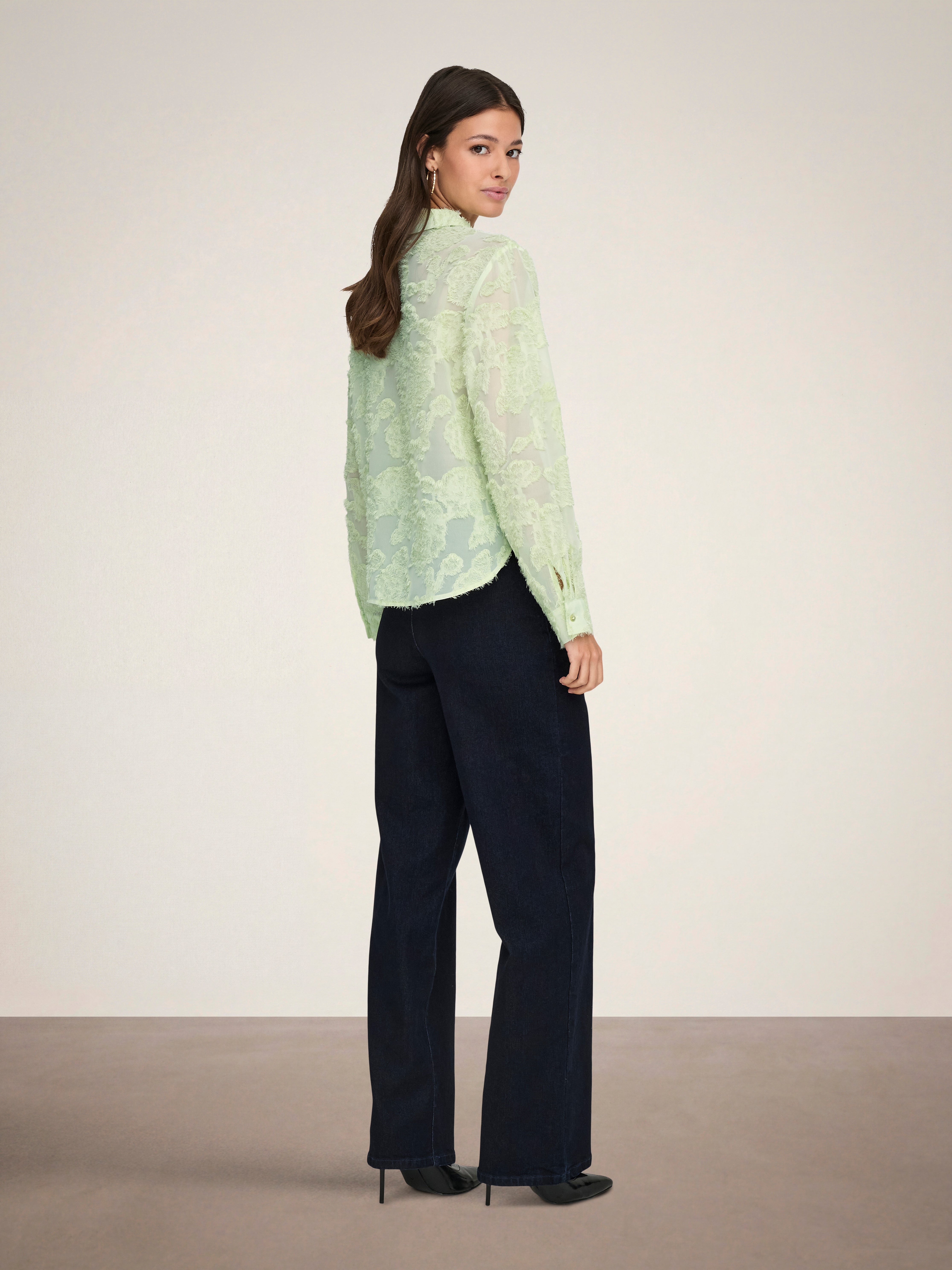Add soft colours and subtle details to your wardrobe with a feminine shirt easy to pair with timeless jeans or a tailored skirt.