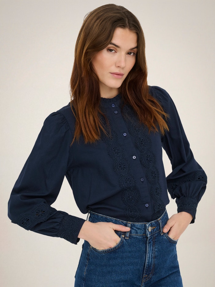 Add soft colours and subtle details to your wardrobe with a feminine shirt easy to pair with timeless jeans or a tailored skirt.