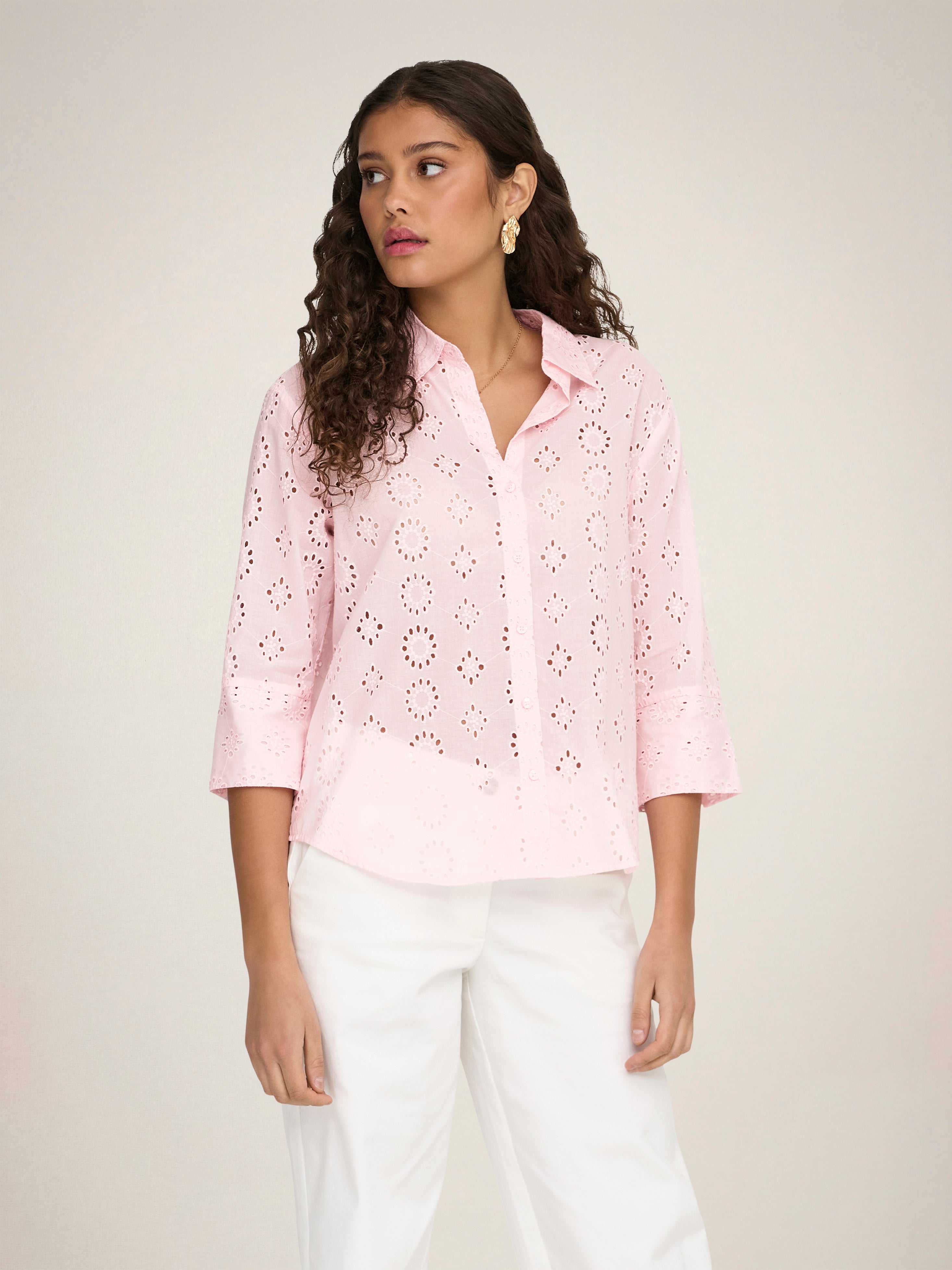 Add soft colours and subtle details to your wardrobe with a feminine shirt easy to pair with timeless jeans or a tailored skirt.