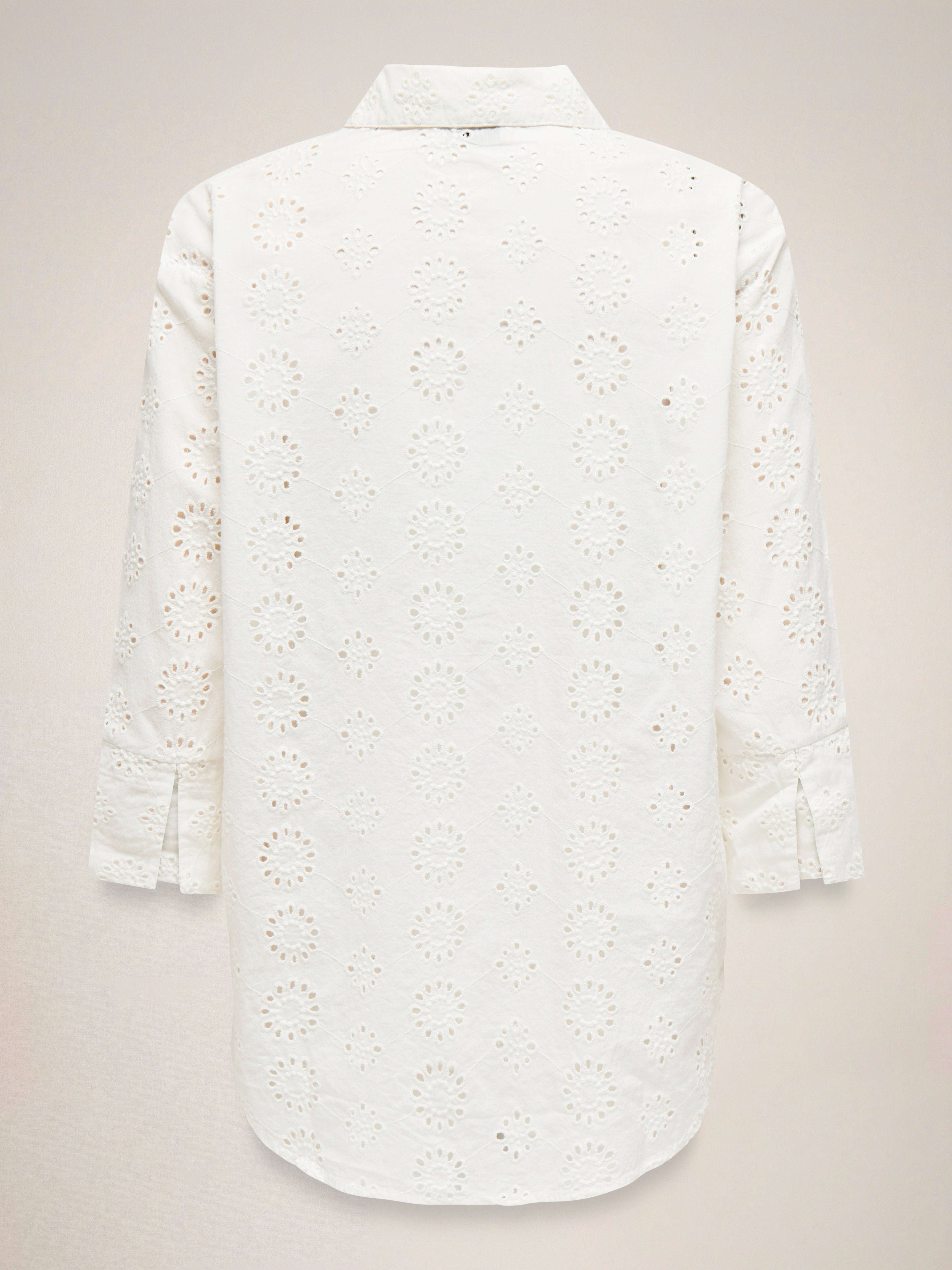- Detalles : Detalles de bordado inglés, Prenda más larga en la parte posterior
