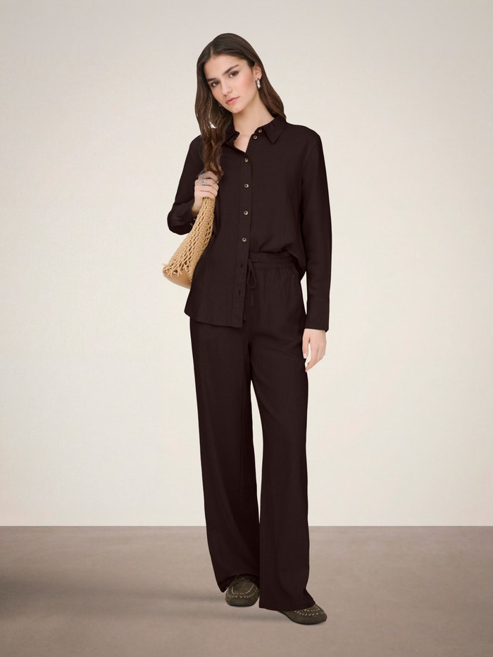 JDYSAY Corte loose Lino Pantalones de pernera ancha