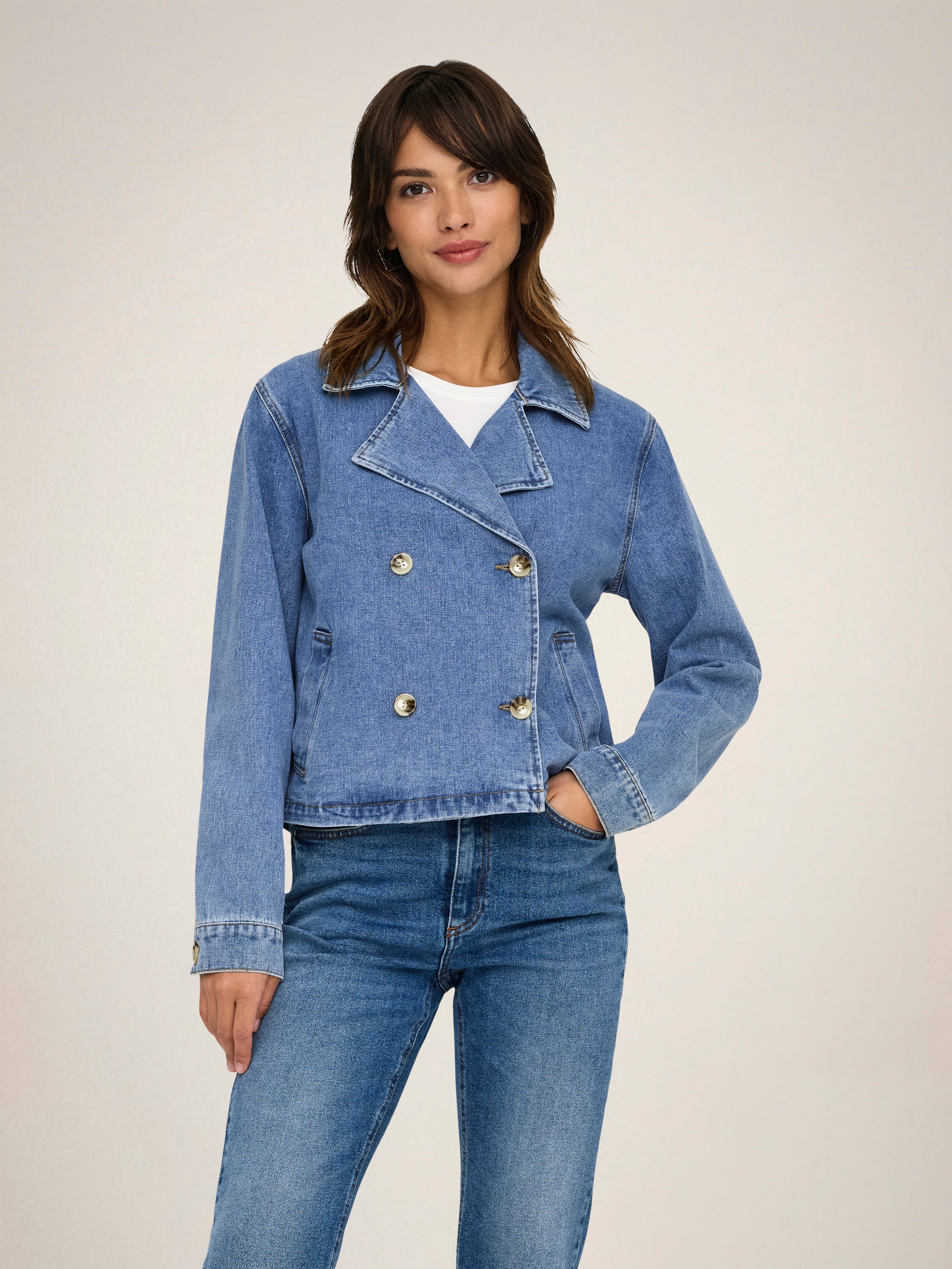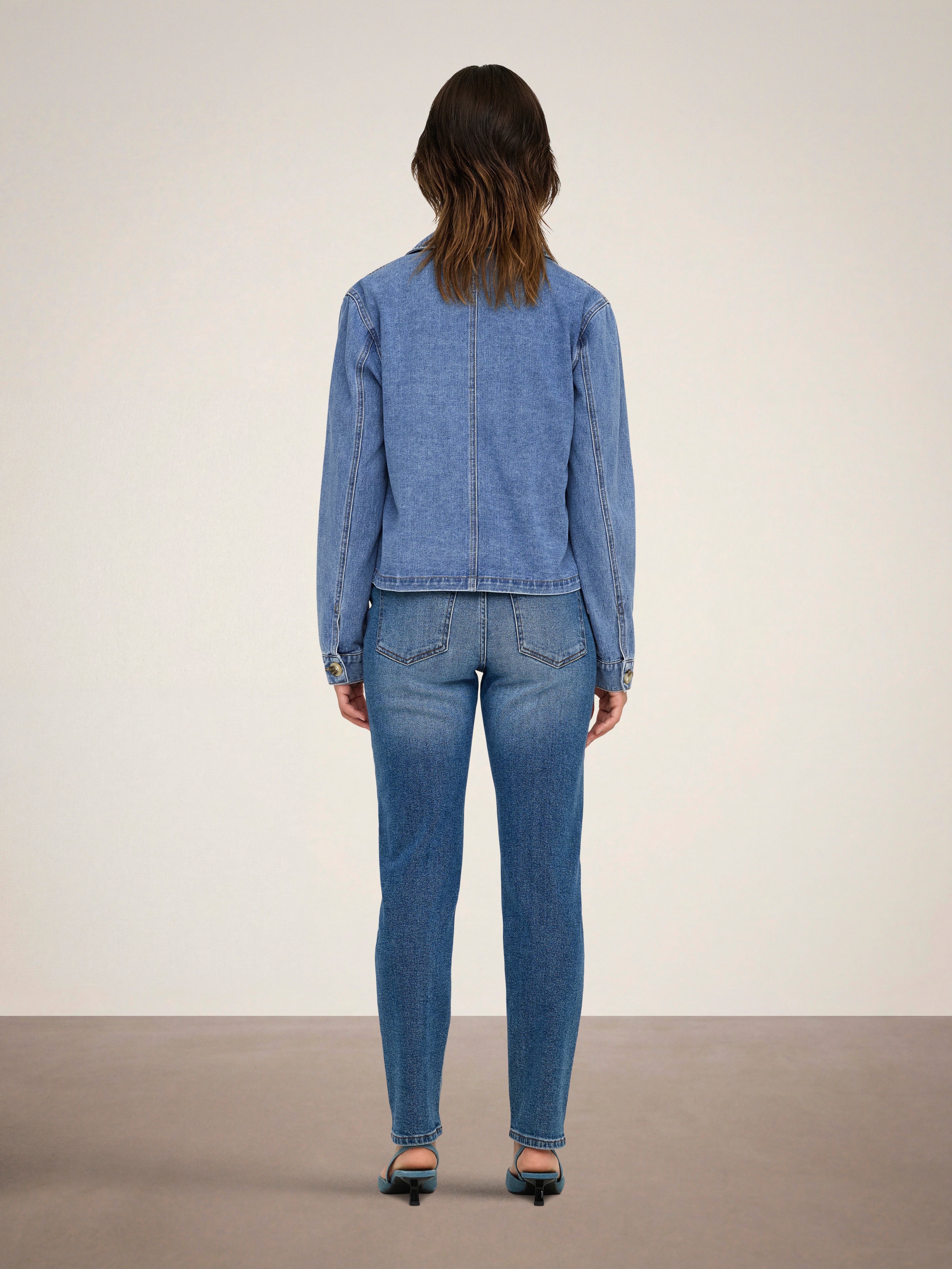 Transforma tu conjunto con una clásica chaqueta de tela vaquera, perfecta para las cálidas noches de verano, o como una capa extra en los cambios de estación.