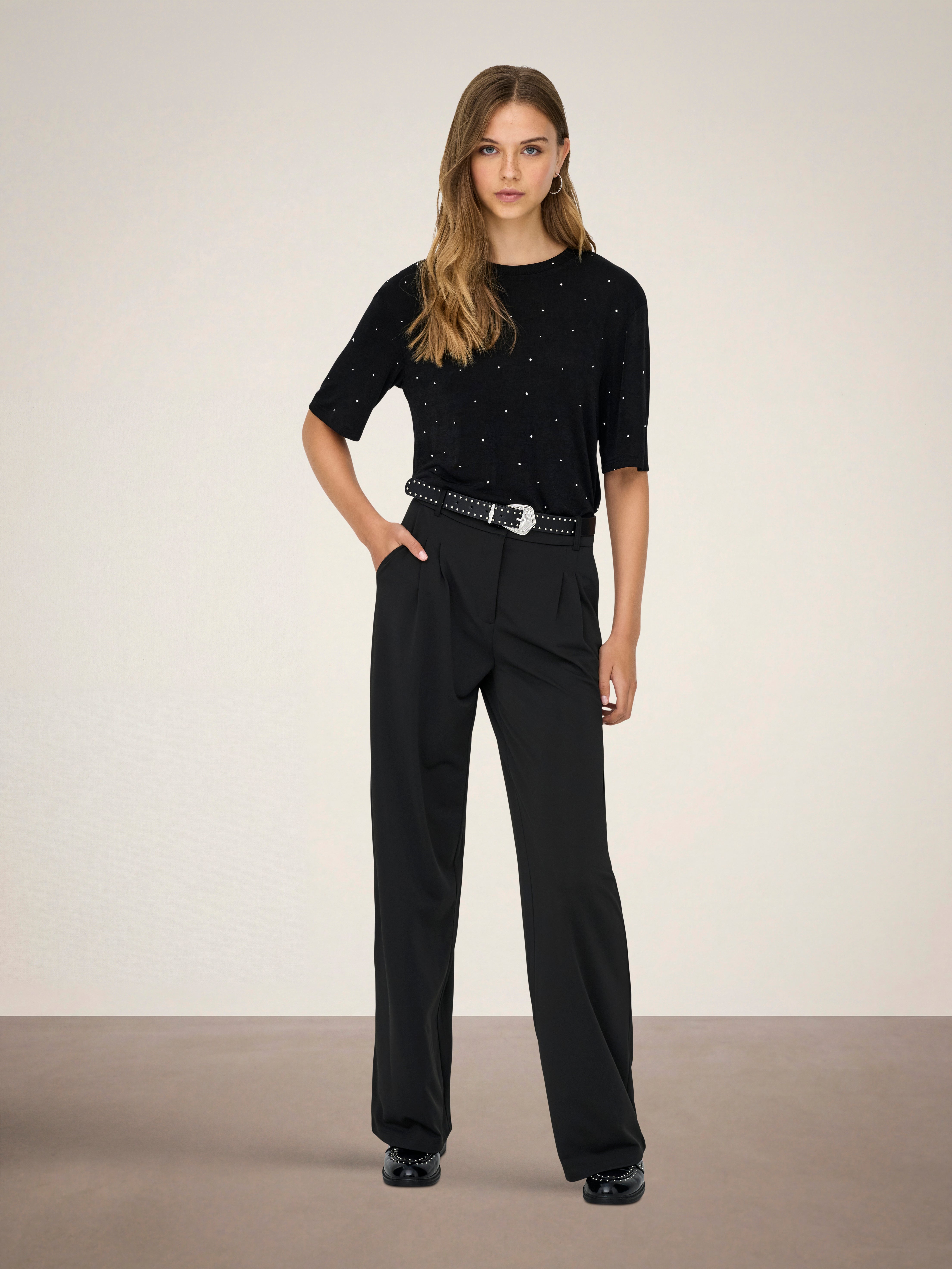 Encuentra los pantalones perfectos y combínalos con una camisa sencilla y unas zapatillas deportivas para el día a día, o con un top festivo y unos zapatos de tacón para salir de noche.
