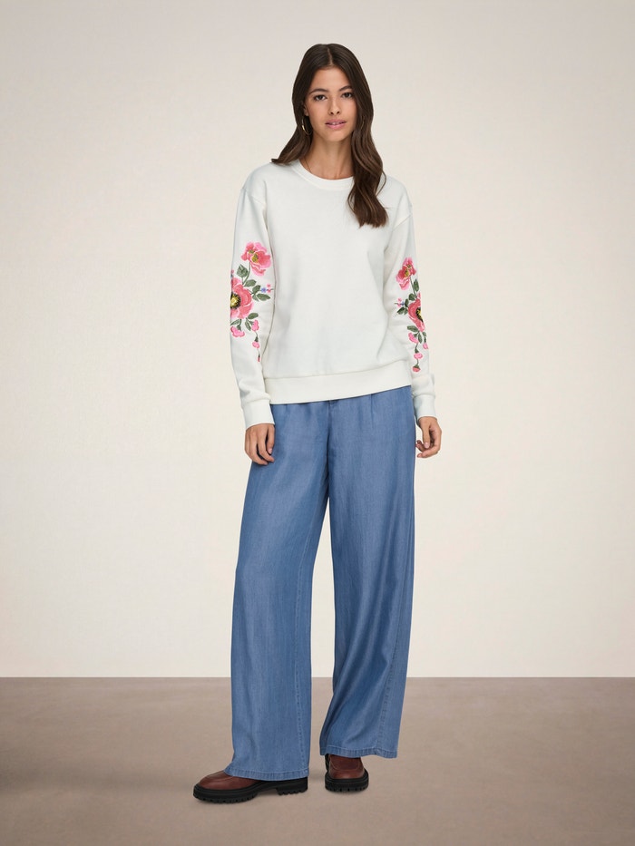 Lisa oma garderoobi mugavust ja lahedust pehme dressipluusiga, ning loo ajatu ilme teksade ja treeningjalatsite abil.