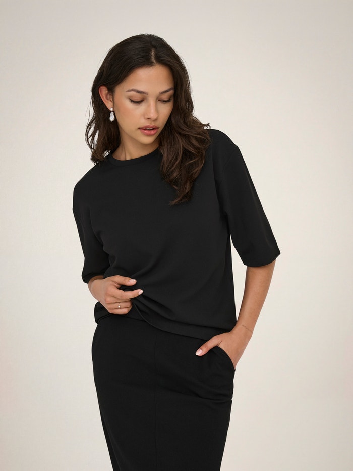 Ruumikas lõige Ümmargune kaelus T-särk