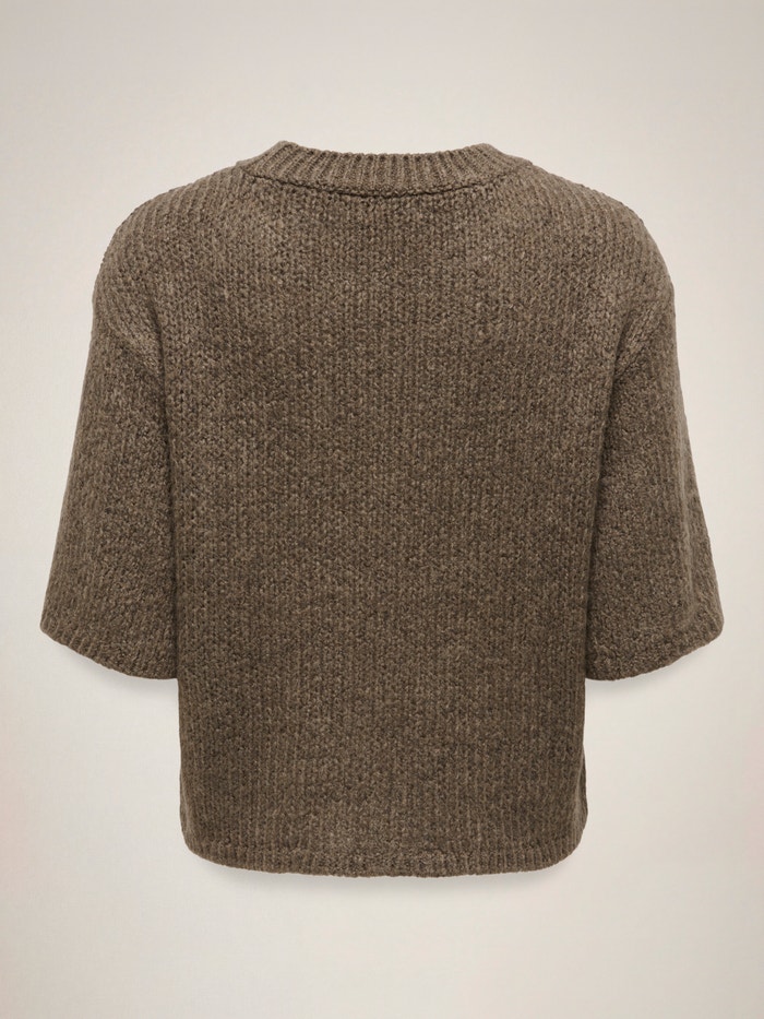 Kootud kangast lõige Ümmargune kaelus Soonikuga mansetid Langetatud õlaosa Pullover