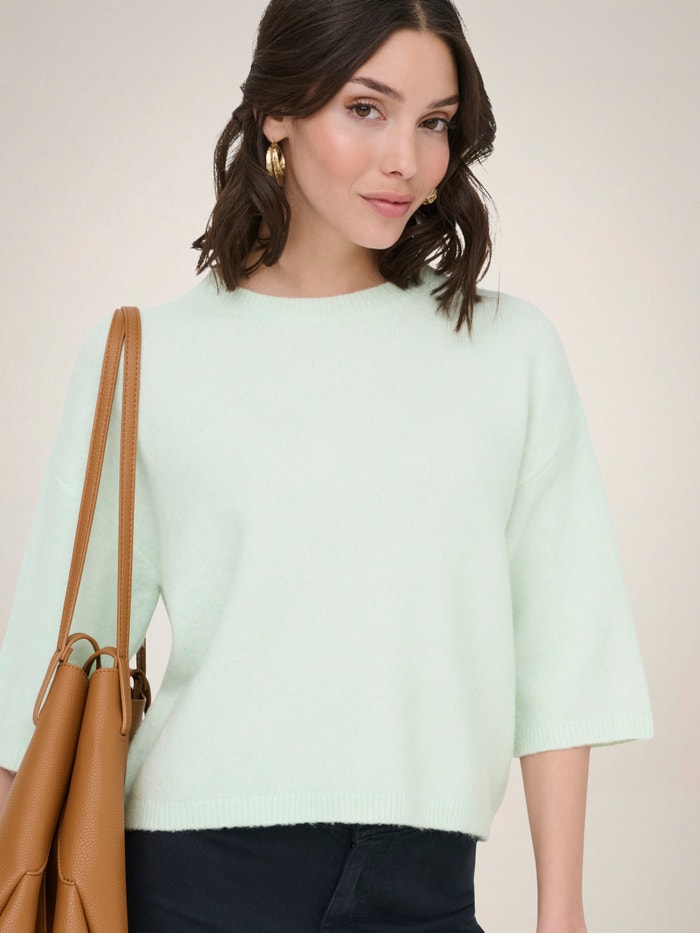 Kootud kangast lõige Ümmargune kaelus Pullover