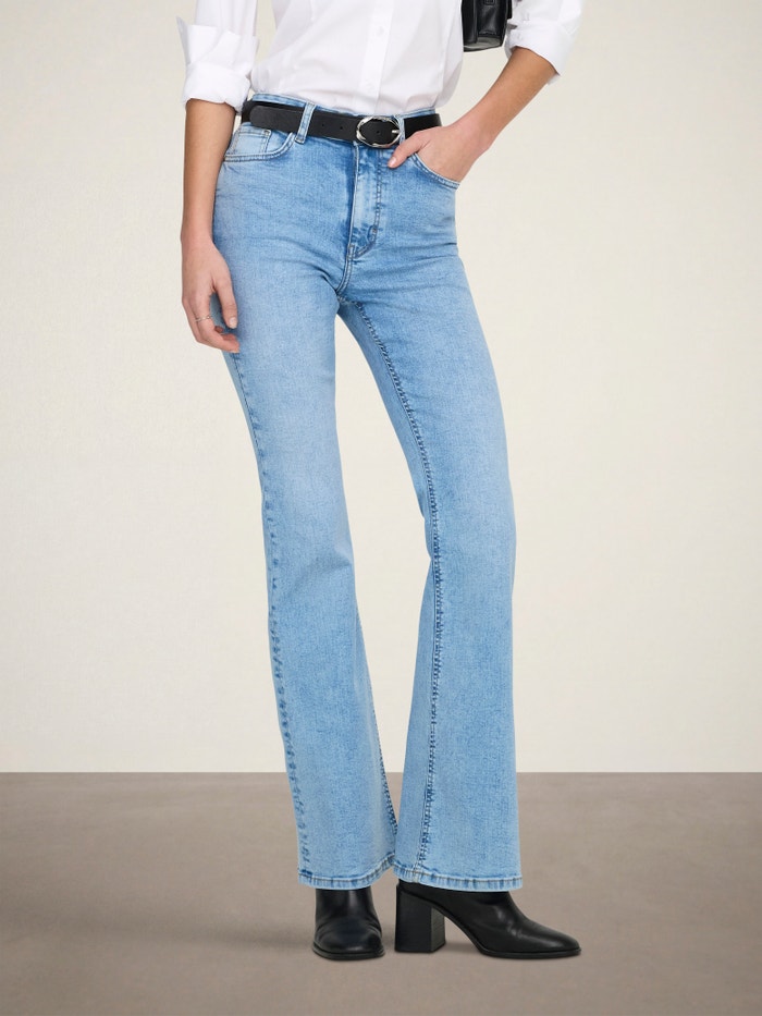 - Coupe : Ce jean coupe flared épouse vos hanches et vos cuisses et s'élargit à partir du genou