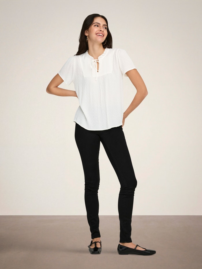 Promijenite svoju svakodnevnu odjeću u sekundi dodavanjem ženstvenog vrha za mekan, čist izraz.