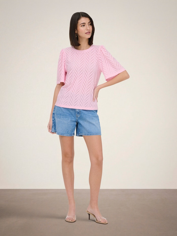Broderie Anglaise je definiran svojim izrezima i vezovima stvarajući lijep, čipkast izgled.