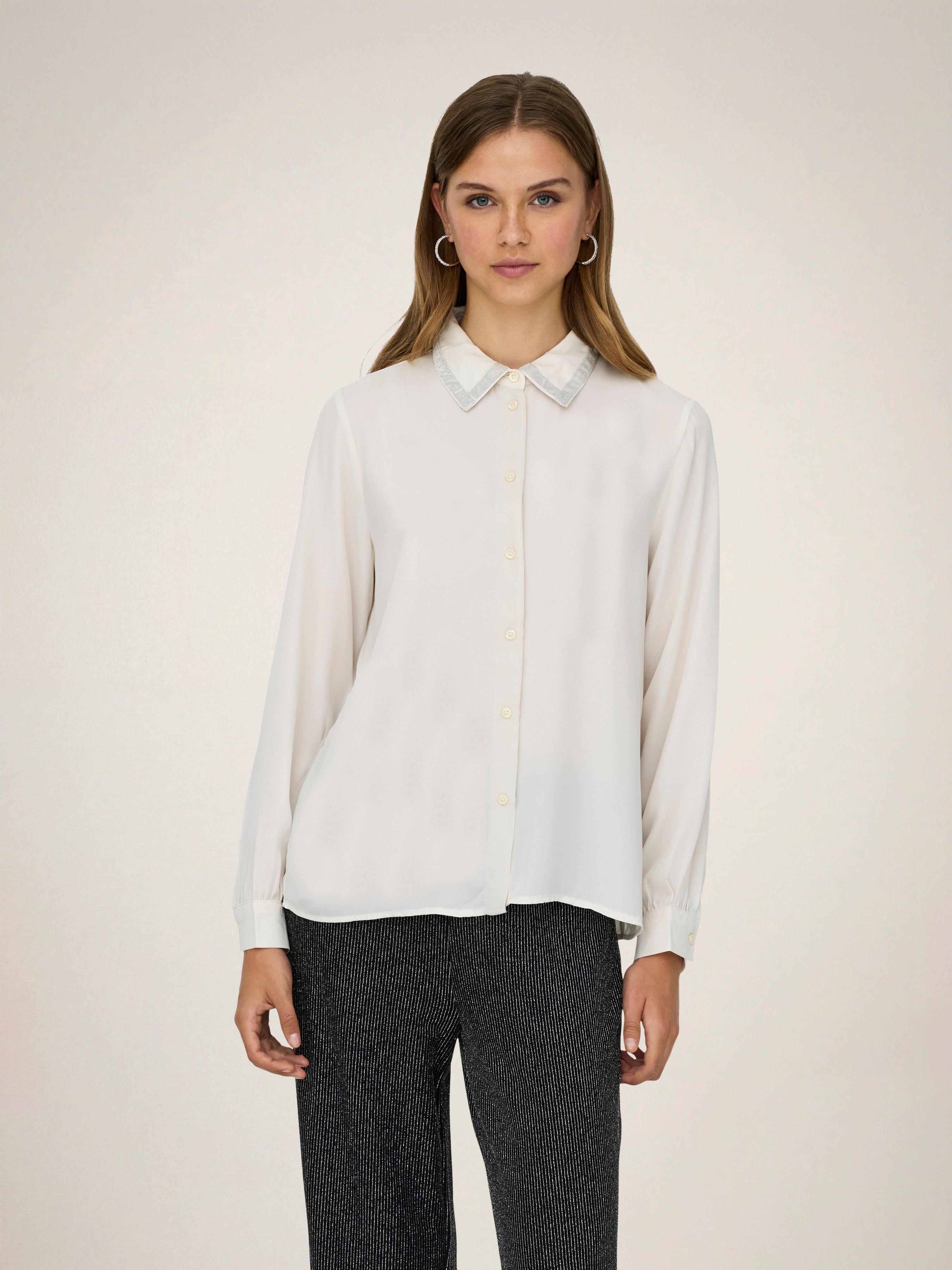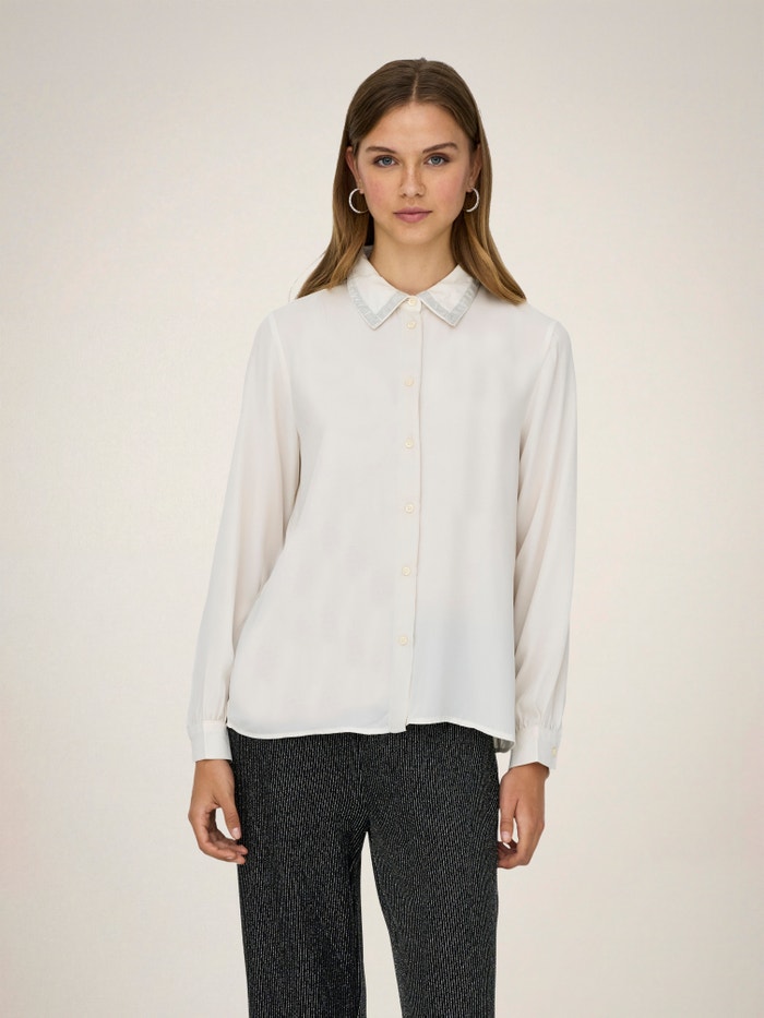 Aggiungi colori tenui e dettagli raffinati al tuo guardaroba con una camicia femminile facile da abbinare a un paio di jeans classici o a una gonna sartoriale.