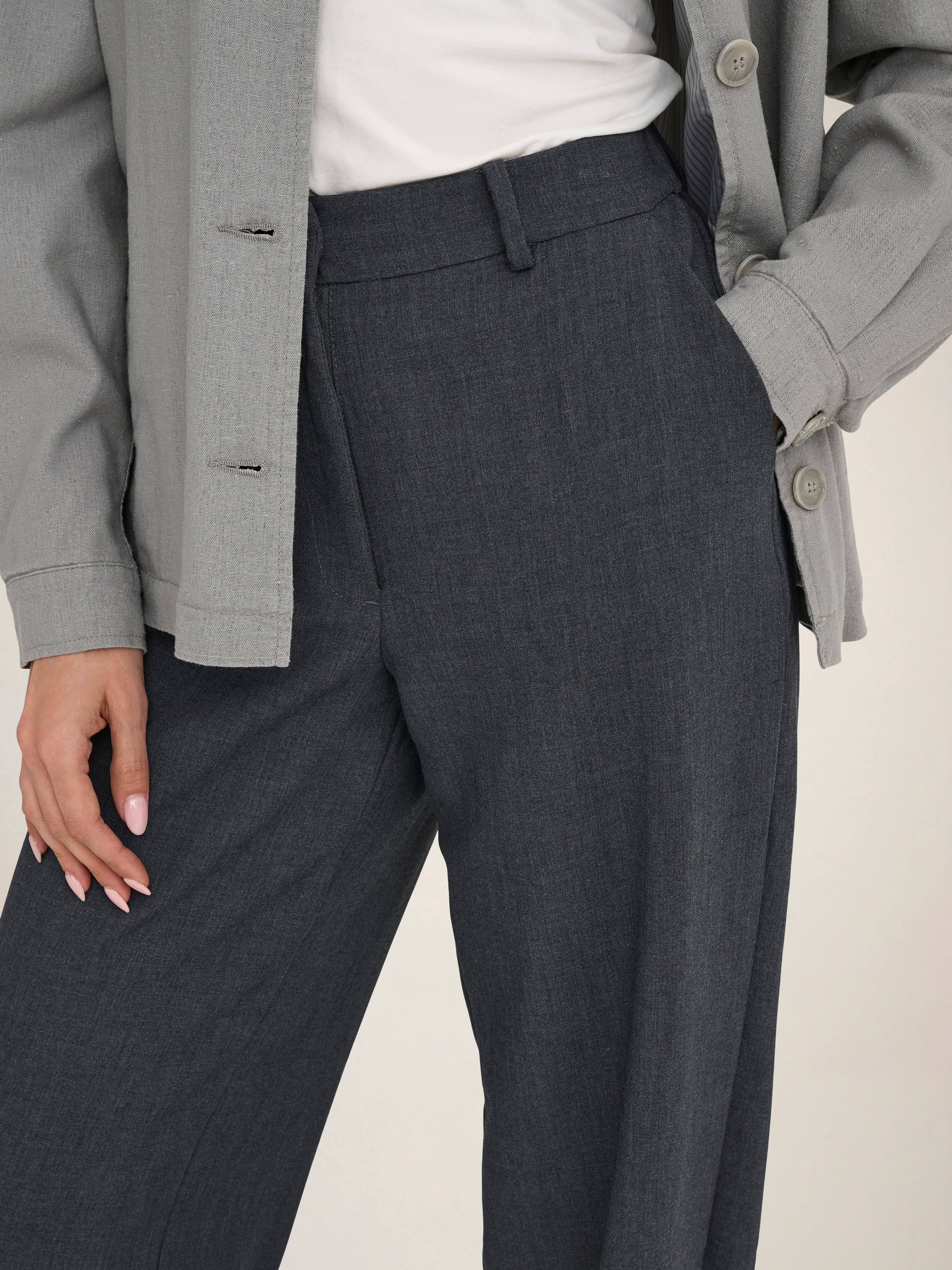 Sfoggia un look elegante e senza tempo con un paio di pantaloni sartoriali abbinati a una camicia e scarpe con tacco o a scarpe da ginnastica e una t-shirt per un look moderno e di tendenza.