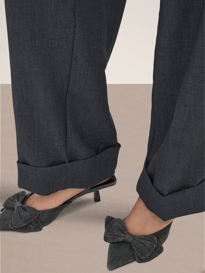 - Dettagli gambe : Bordi con risvolto