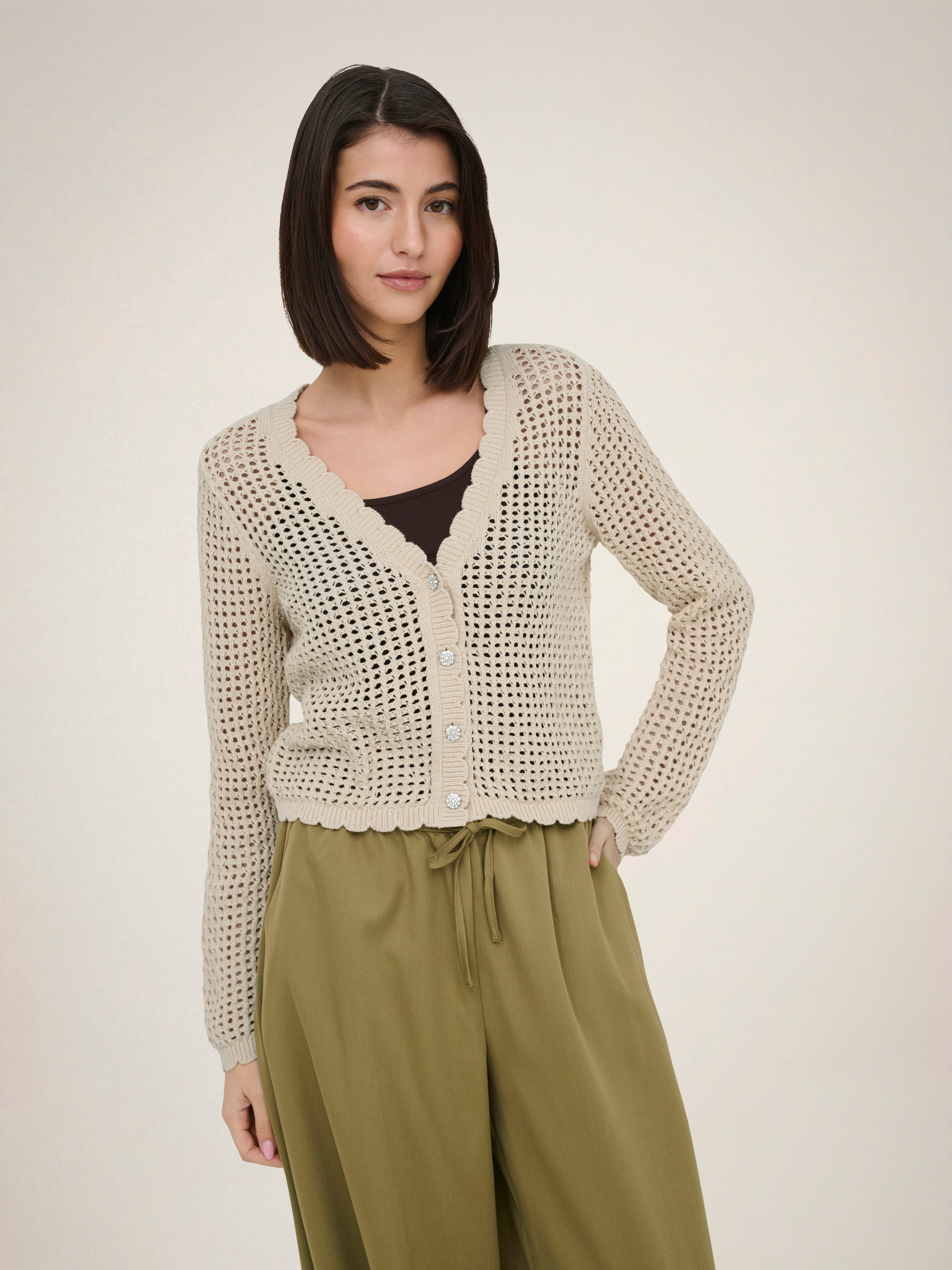 Completa il tuo look con un cardigan in maglia, indispensabile in ogni guardaroba e perfetto per le giornate invernali e le sere d'estate.