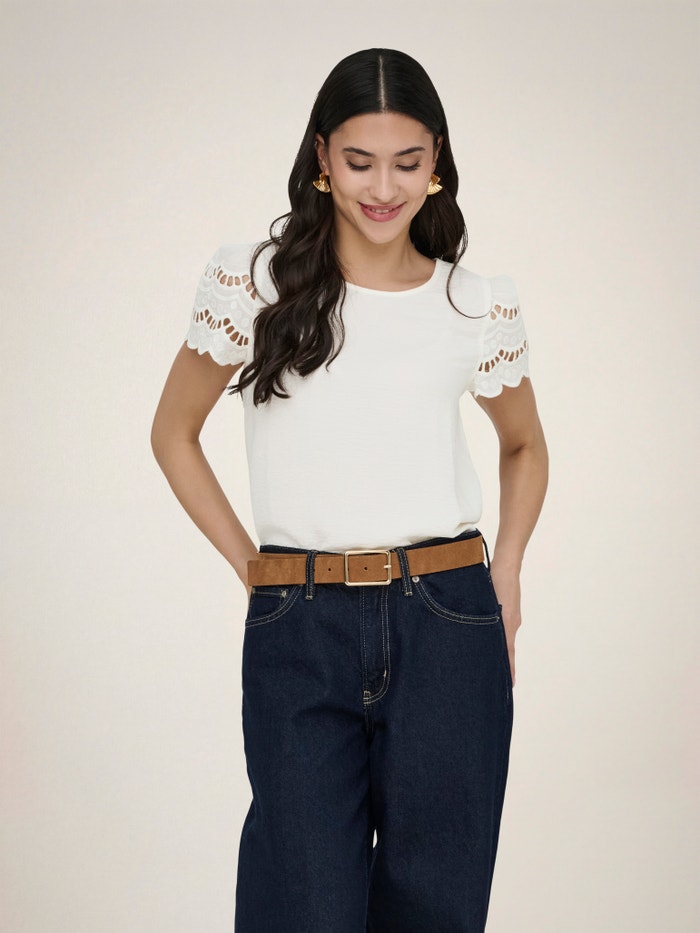 Pakeiskite savo kasdienę aprangą akimirksniu, pridėdami moterišką viršutinę dalį, kad išraiška būtų švelni ir švari.