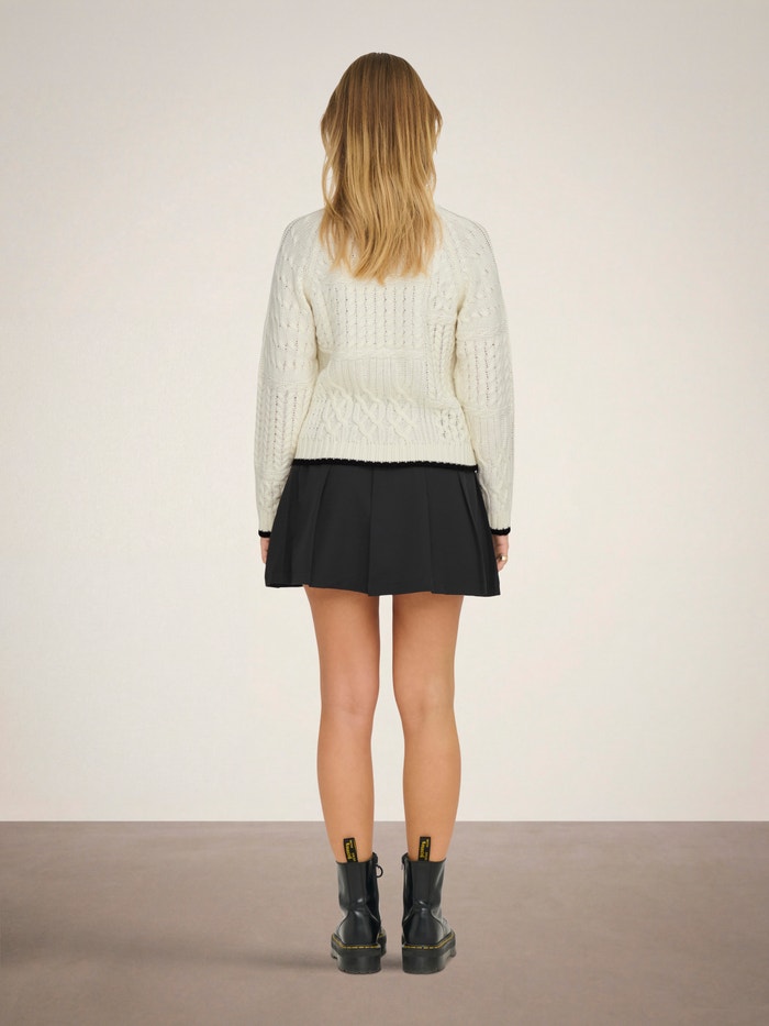 Struktūrinis mezgimas pasižymi plačiu raštų ir struktūrų asortimentu, sukuriančiu stilingą, švarų vaizdą.