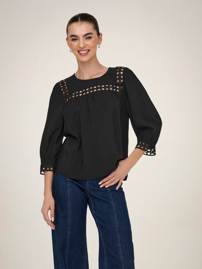 Mainiet ikdienas apģērbu sekundes laikā, pievienojot sievišķīgu topu maigai, tīrai izteiksmei.
