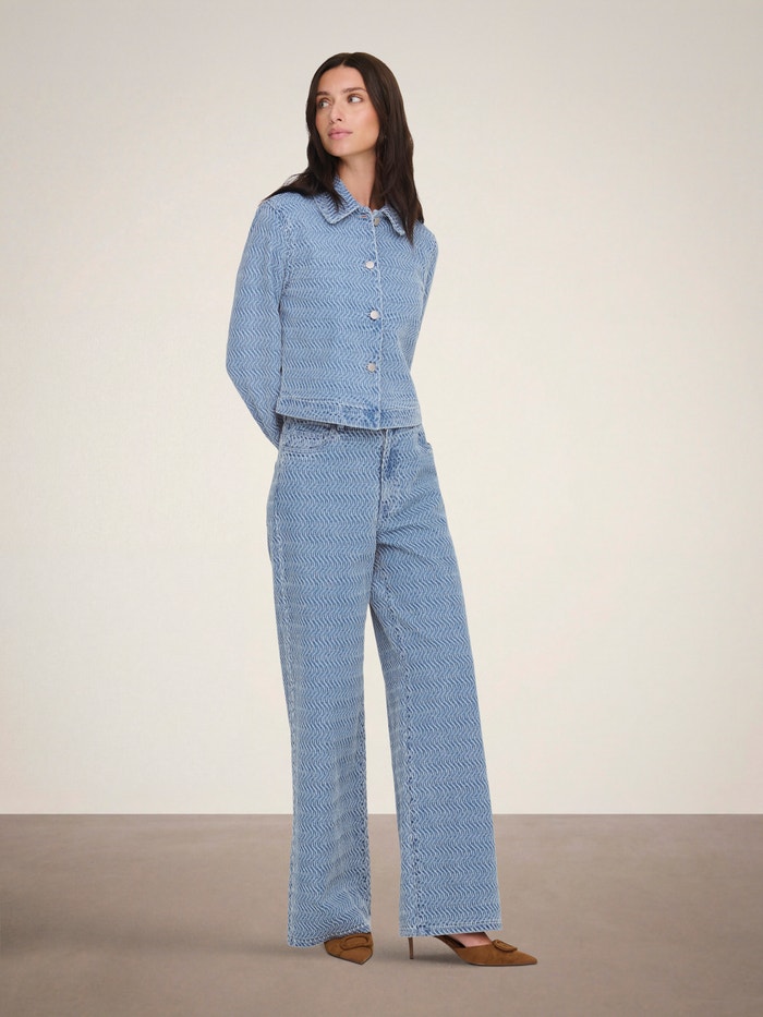 Nekas nepārspēj džinsu - mūžīgā tendence pieder jebkurai garderobei un izskatās lieliski ar kontrastējošiem baltiem priekšmetiem vai saskaņota ar citiem džinsa stiliem, lai iegūtu jautru, stilīgu izskatu.