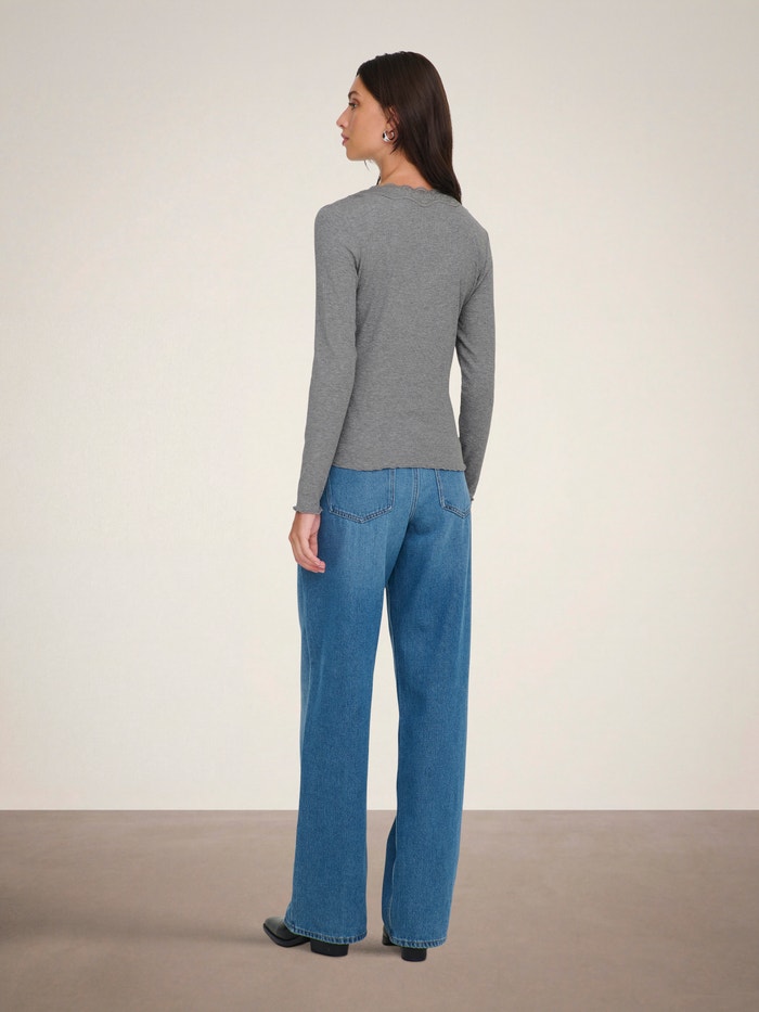 Mainiet ikdienas apģērbu sekundes laikā, pievienojot sievišķīgu topu maigai, tīrai izteiksmei.