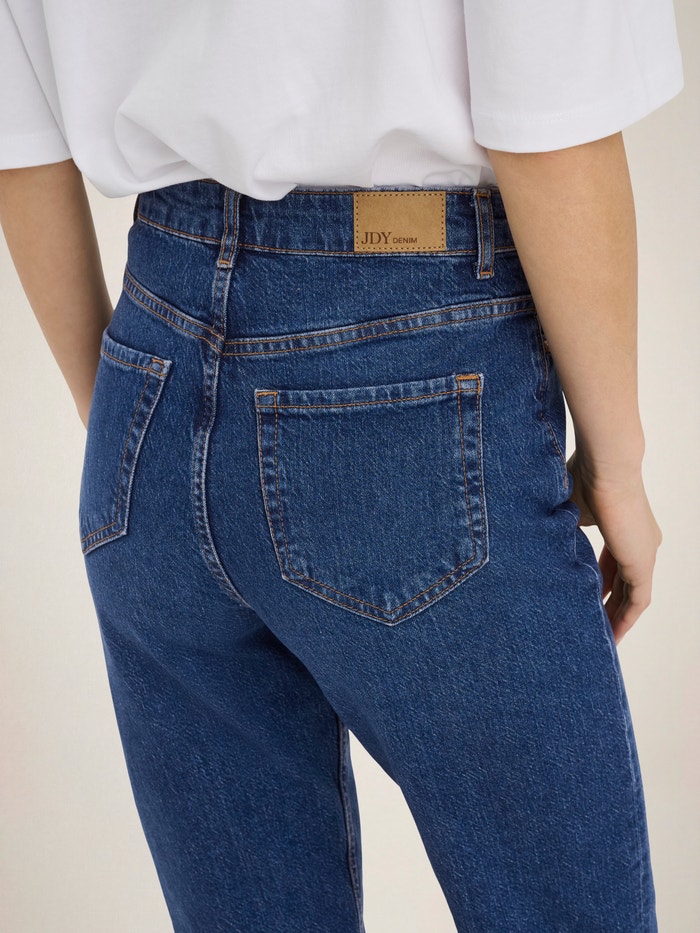 JDYPETRA Augsts viduklis Taisni piemērots Šiem džinsiem sākotnēji vajadzētu būt cieši pieguļošiem, jo laika gaitā tie izstiepsies un pielāgosies jūsu ķermenim. Lai tie labāk piegulētu, apsveriet iespēju izvēlēties mazāku izmēru Džinsi