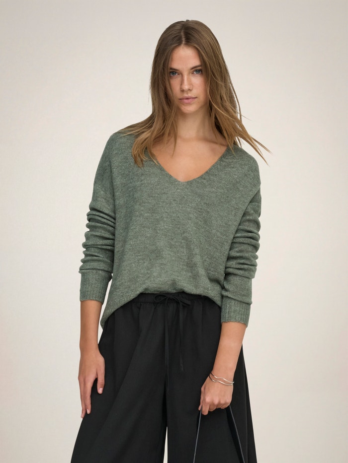 - Hals : V-hals