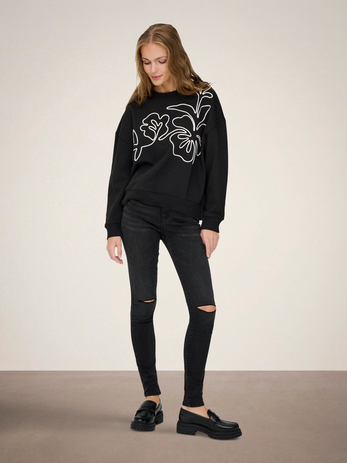 Tilfør komfort og kulhet til garderoben med en myk sweatshirt, og skap en tidløs look med et par jeans og joggesko.
