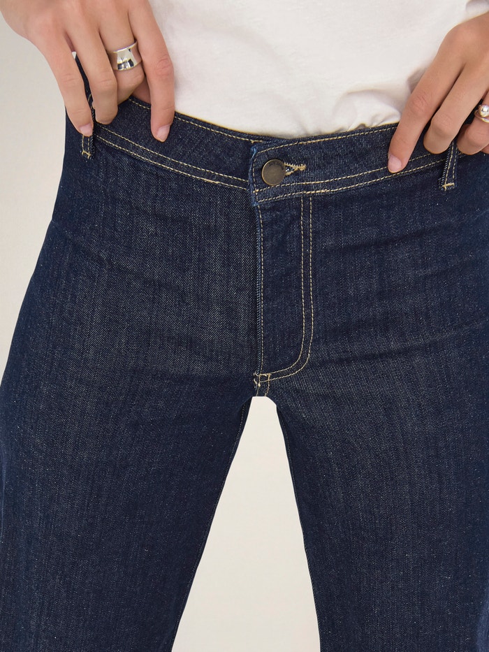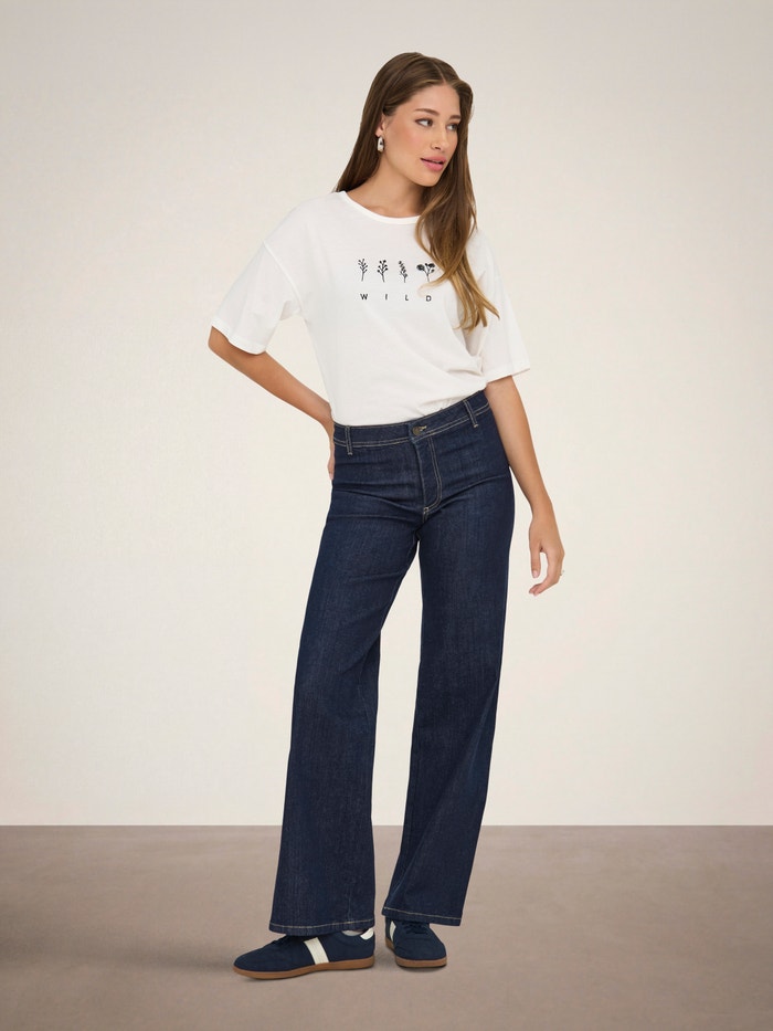 - Passform : Denne stylen med vide ben er designet med fokus på komfort, med god plass fra hofte til ankel