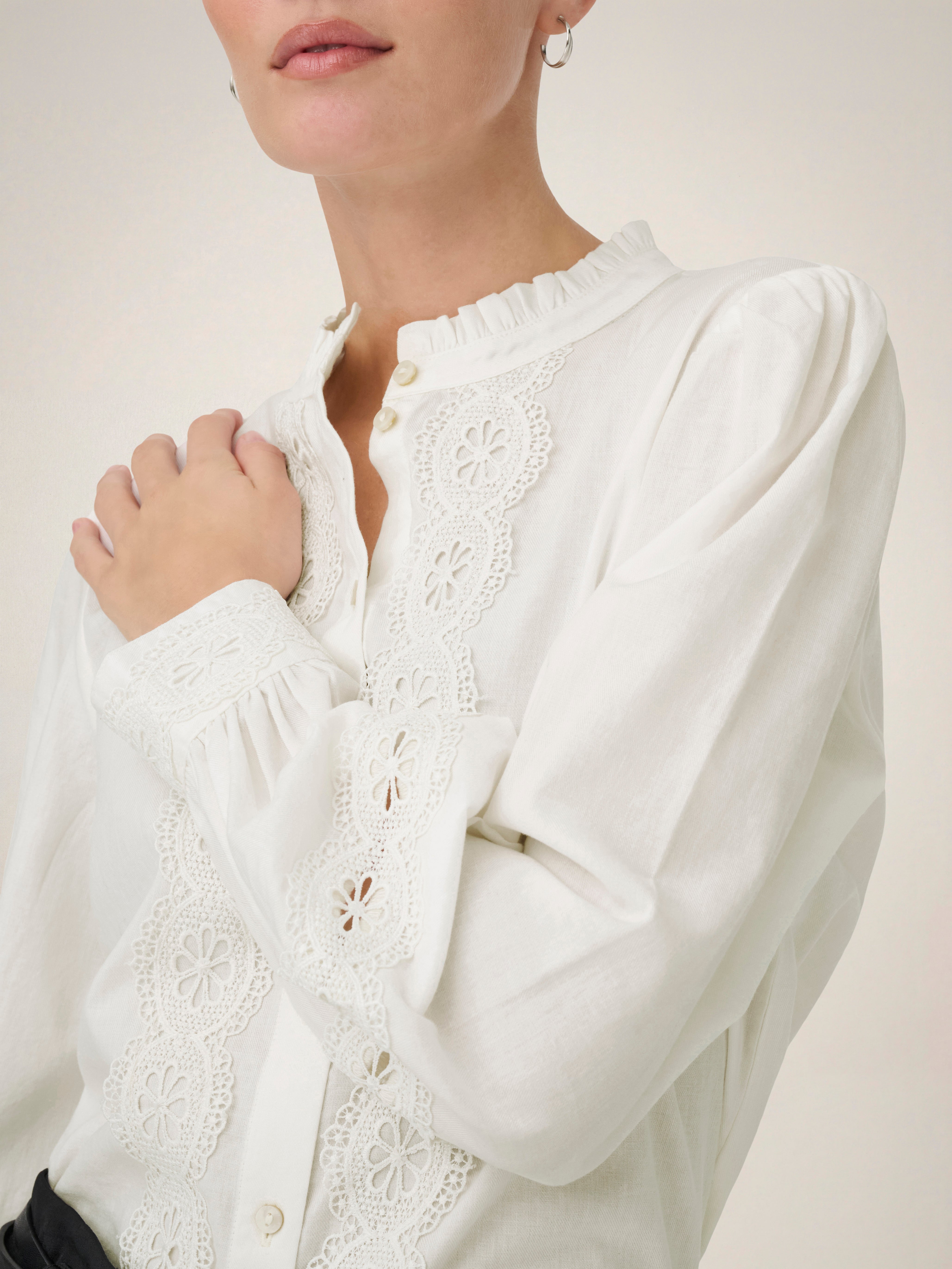 Voeg zachte kleuren en subtiele details toe aan je garderobe met een mooie blouse die moeiteloos te combineren is met een jeans of een stijlvolle rok.
