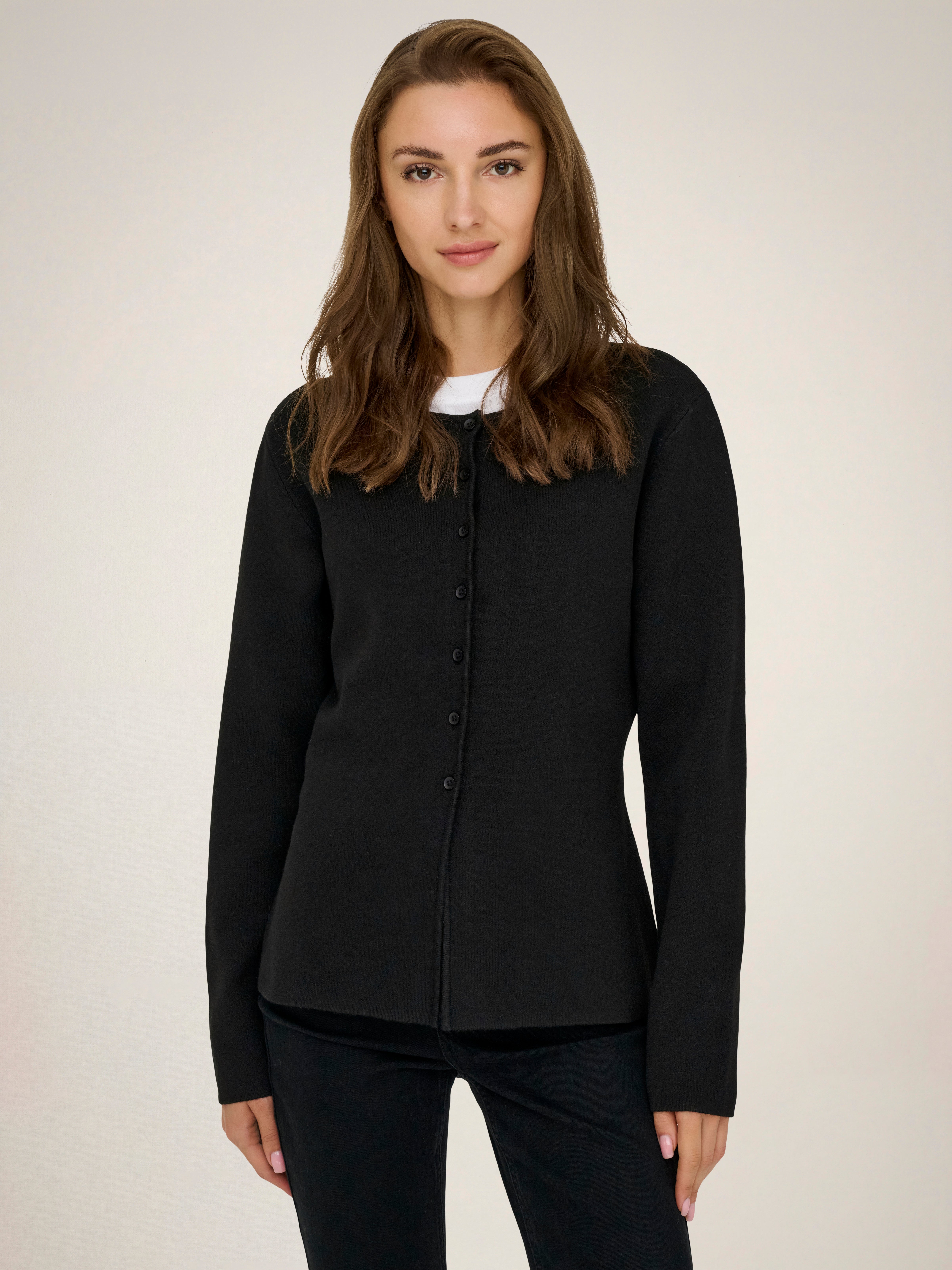 Maak je look helemaal af met een tijdloze gebreide trui voor extra zachtheid en warmte.