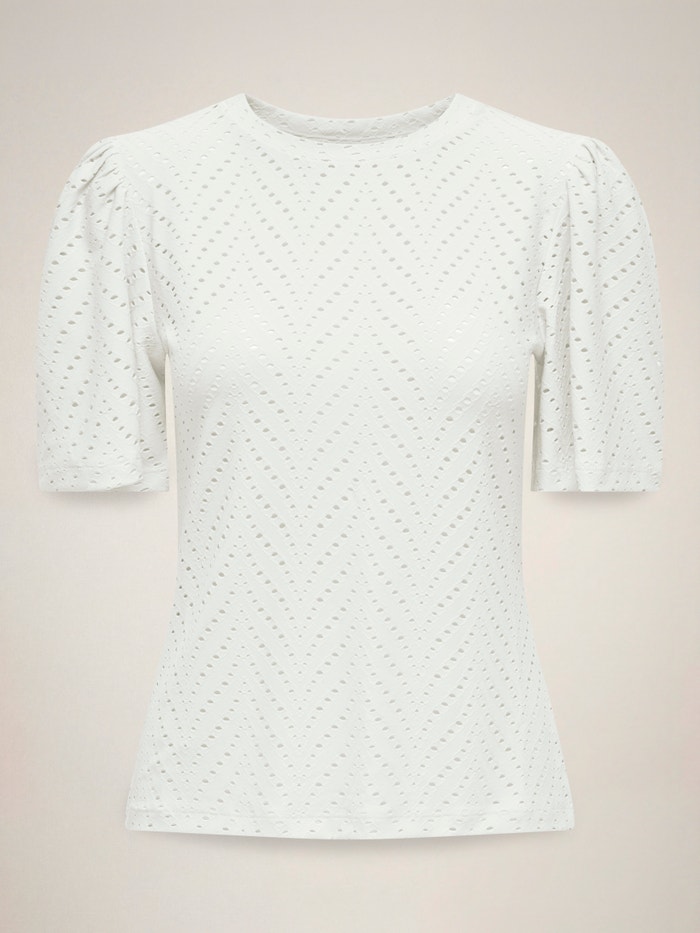 Broderie Anglaise herken je aan de stijlvolle cut-outs en borduringen, wat hetzelfde mooie effect heeft als kant.