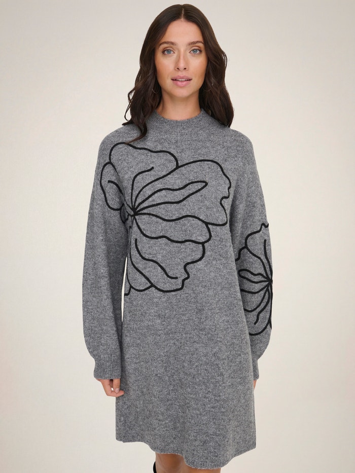 Maak je garderobe klaar voor koude dagen met een gebreide jurk die perfect te combineren is met een panty of jeans.