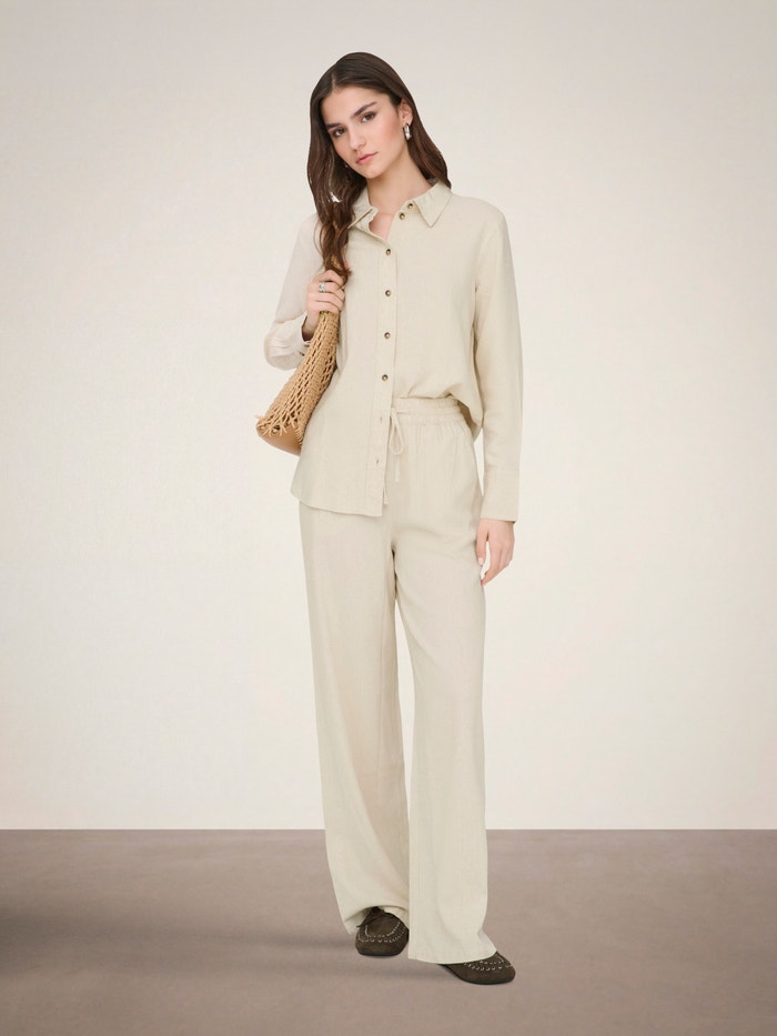 JDYSAY Luźno dopasowane Len Spodnie z szeroką nogawką