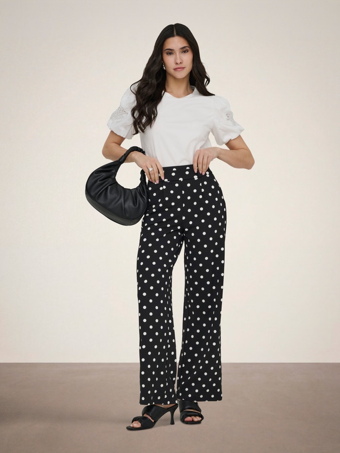 Encontre o par de calças perfeito e combine-o com uma camisa simples e um par de ténis para o dia-a-dia, ou combine-o com um top festivo e saltos altos para uma saída à noite.