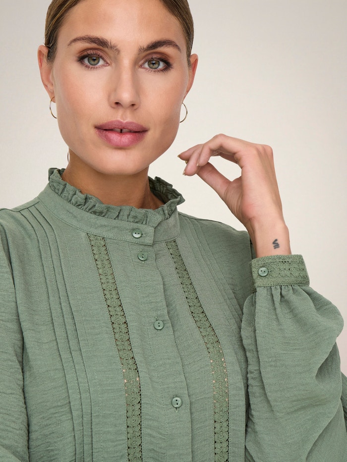 Adicione cores suaves e detalhes subtis ao seu guarda-roupa com uma camisa feminina fácil de combinar com calças de ganga intemporais ou uma saia à medida.