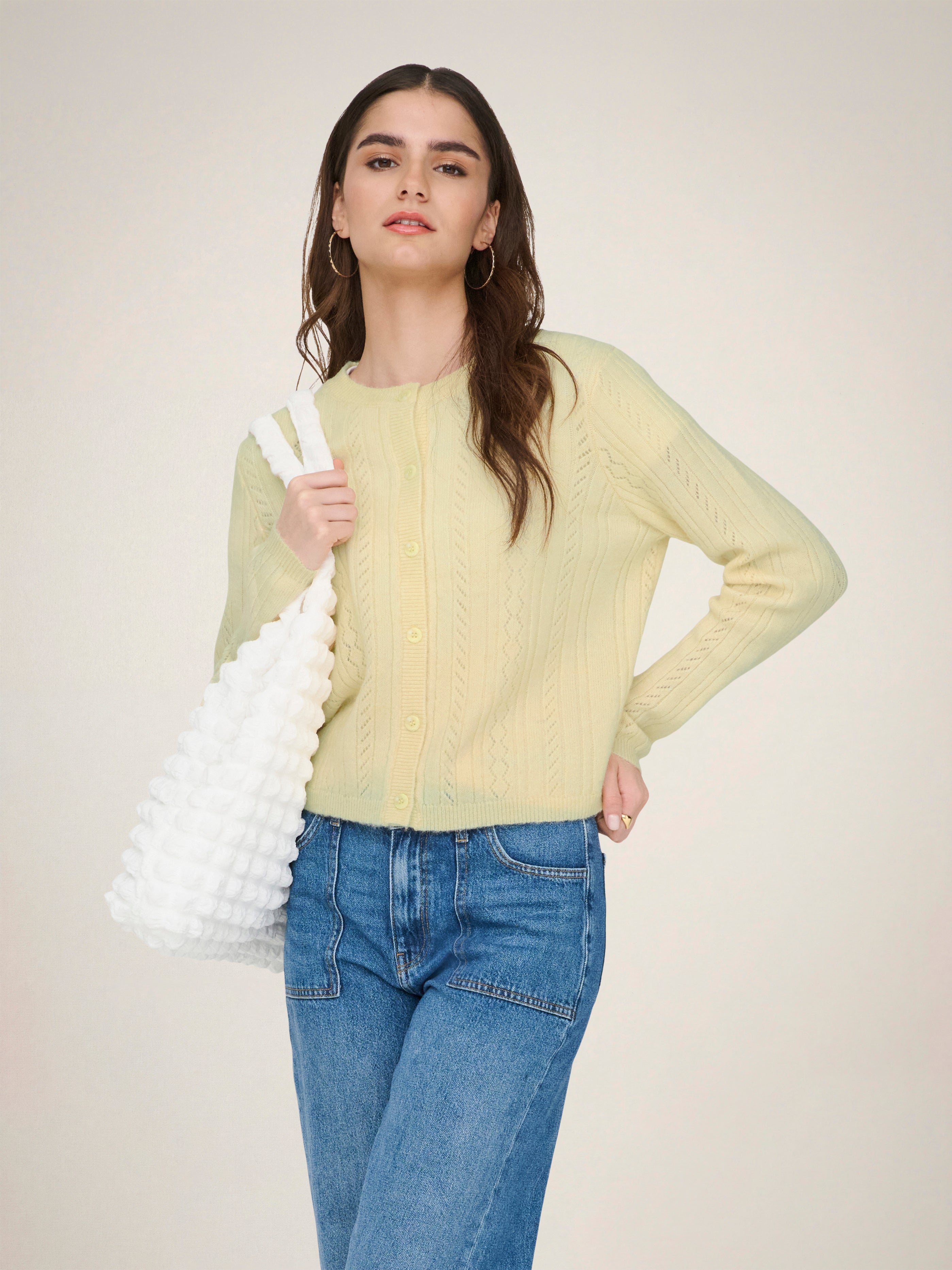 Fullända din look med en stickad kofta som är oumbärlig i vilken garderob som helst och perfekt för både vinterdagar och sommarkvällar.
